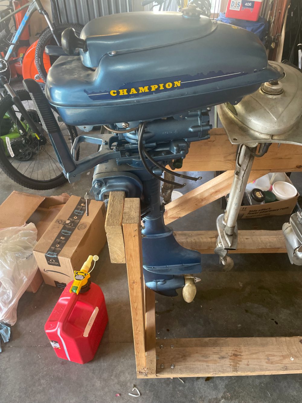 1949 champion 4ks Racer in decent restored condition(decals could use replacement), no spark(bad coil), but otherwise complete and probably easy to get running(have not checked the impeller). I will eventually sell it and the handifour to the best offer in cash or trade I can get during Tomahawk(but I may accept good offers before then). The handifour is in great shape with spark in all four cylinders but the gas tank could use work. Handifour also has cottage racer-style carb and prop. I'd potentially be interested in trading for (or just outright buying) Lockwood chief, foldlight, Elto speedster, pal, Cub/mate, or 15ci champion hot rod, but only for a fair trade value. I'm in no rush to sell and am only selling to make space