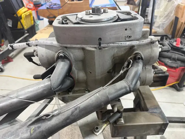 Konig 350cc Racing engine and stick tower housing. The engine was bought from a estate. I made sure it runs and have run it several times on my test stand. Its complete, Pipes, stick tower, Pressure regulator is new. I'm focusing on Stock and Vintage Mercury engines at the moment and the Konig is just sitting there. Make me an offer. Shipping has gotten tough, but we may be able to work something out. Contact me with any questions. It's also listed on eBay along with a 12-15 Konny lower that is new and a single spare expansion chamber. It could be packaged together for additional cost.