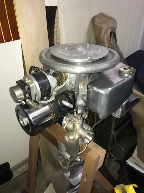 The motor being offered for sale is a very rare factor race engine [serial #B29]. These racing engines were built between 1927-29 as the interest in Outboard racing began. The Watermota race engines were single cylinder, high compression, 15ci ( 350cc) 3x3 bore, modified Amal carb, with a high output, adjustable ML Magneto. The Race engines were used on Bullet and British Maid hydros. The horsepower rating was 15-18 mph depending on tuning. This is a rare motor with perhaps as little as 12 built with a few as 5 still in existence.