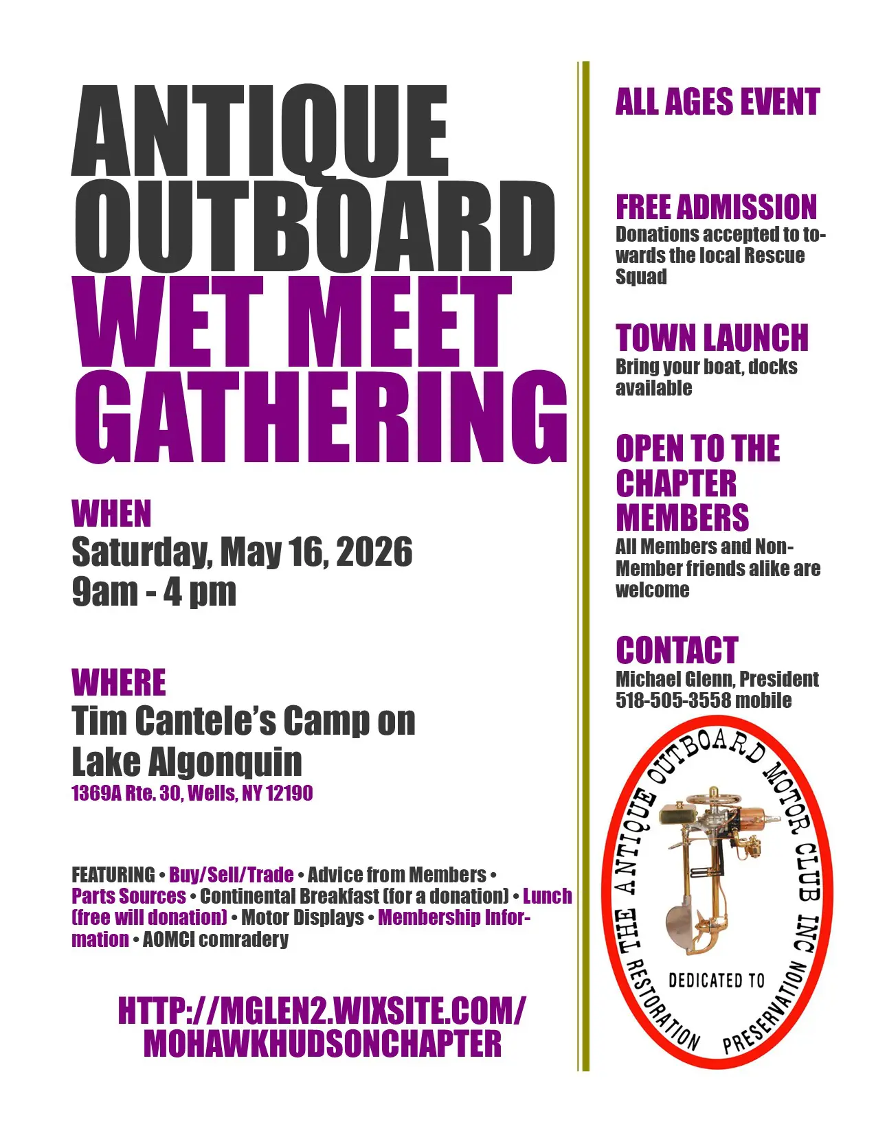 From the NYS Thruway, take exit 27 north on Route 30 to the lakefront of Lake Algonquin. Look for the AOMCI sign. Breakfast foods, coffee and donuts in the AM, […]