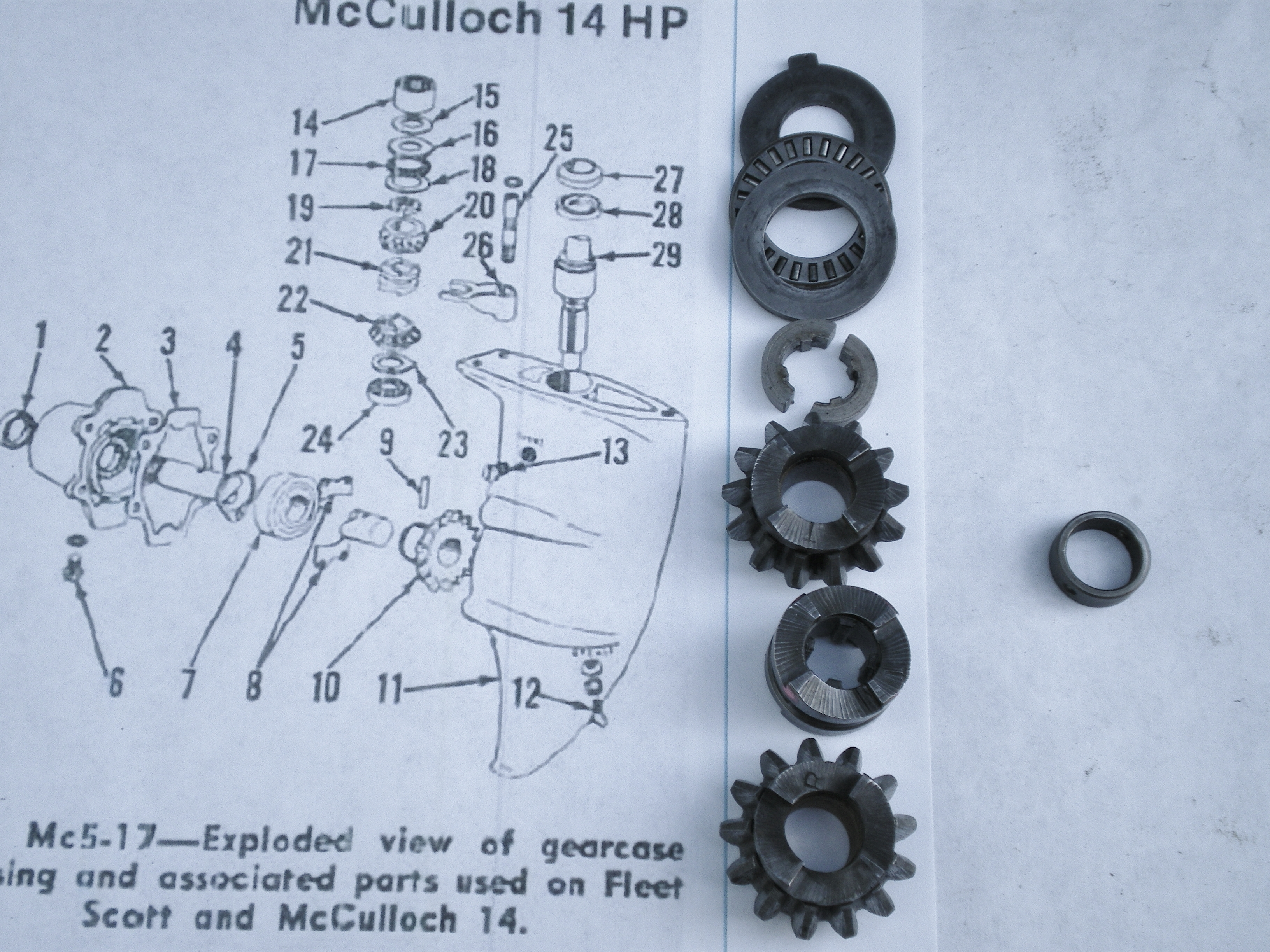 Hello all, I trying to reassemble the lowerunit on my 12hp scott mac, I mixed up the forwaed gear and reverse gear. I have a 14hp parts book and it lists different numbers for the gears. I cleaned off the gears and got out the trusty magnifying glass and could not find any numbers. Is there any other way to find out which is witch? Thanks.