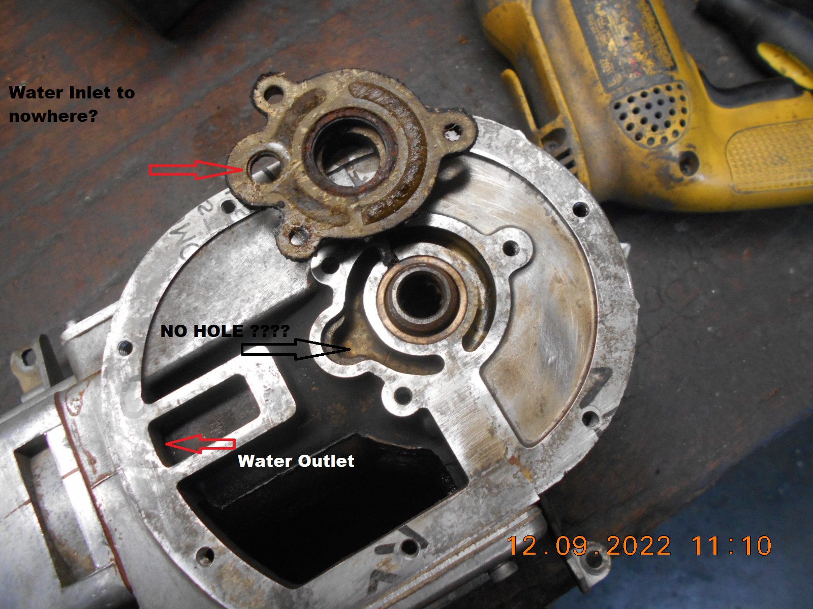 When I removed the “water inlet / crank seal” cap from