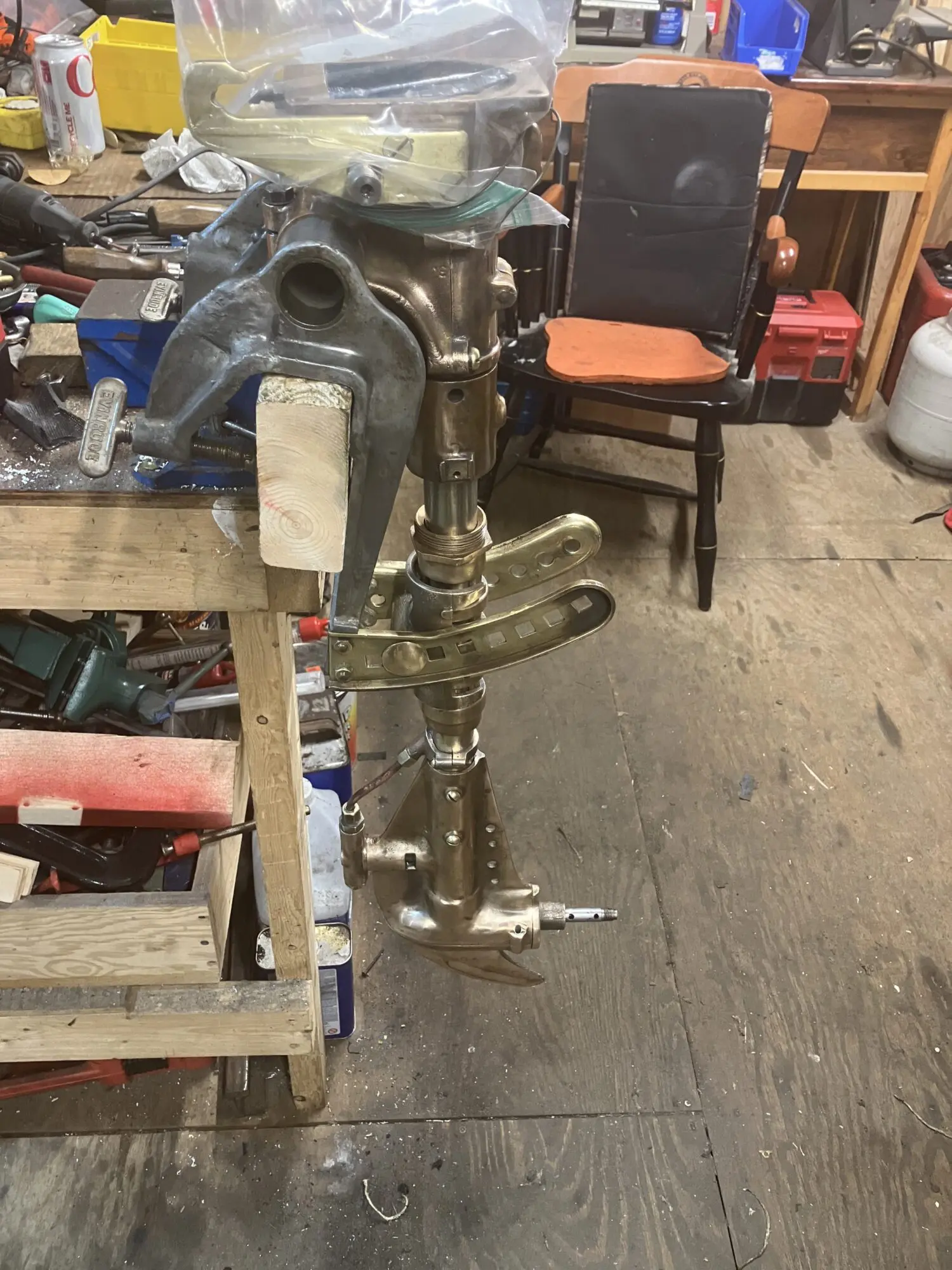 April 6, 2026 at 6:39 pm #314369I got a pair of rings from a member at our Pine Tree Boating meeting on Saturday! Thanks Tom! Did some cleaning and polishing on the bronze/brass items and the tank. I took the reverse linkage all apart and cleaned the swivel tube and repacked it with string covered in grease.