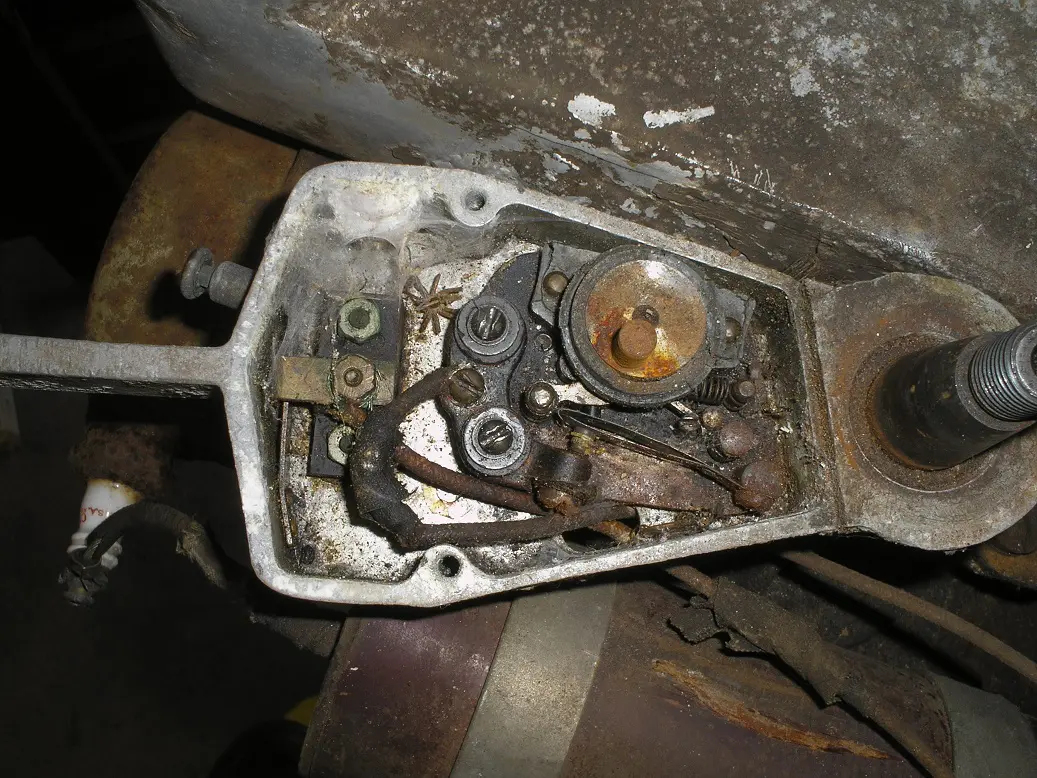 This is the damaged timer, but the points seem to click when I manually spin the rotorFront view of the motor. Seems to be in nice shape for being 100 years old.