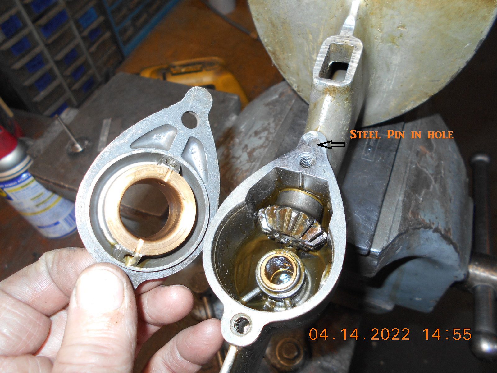 Also, I noticed above the upper gearcase cover bolt hole, that there is a steel pin