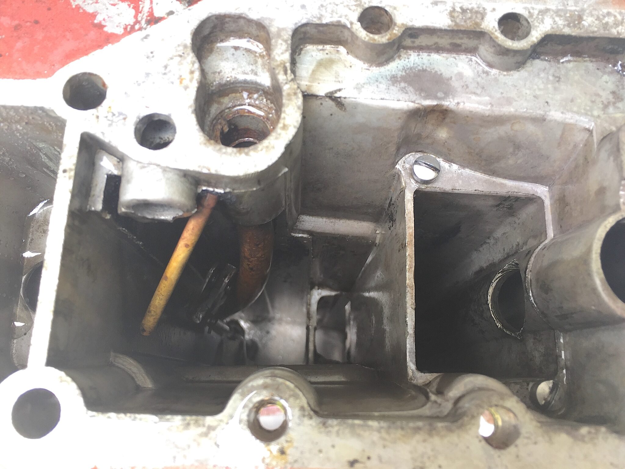 Also, the exhaust pipe was held on loosely by a cotter-pin. The interaction between the male fitting from the exhaust port on the block and the female tailpipe has a good 1/8 inch of play. Is this the original design, or a field fix by a previous owner?