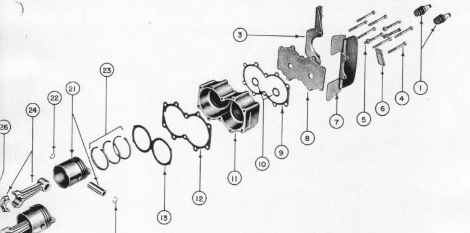 First, thank you Buccaneer for the parts layout. I received two number 13’s and was wondering if two were needed for this motor. It was 11 PM when I was working on this motor. I thought maybe someone on this board would be knowledgeable about this old motor to give a good answer before I was able to contact Russ Larson. Not confused about what a head gasket is, just reaching out to other members for their input.