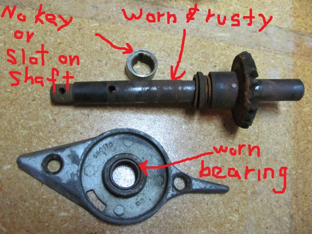 It keeps getting better. Pulled the prop off and found a pretty worn bushing and shaft with line wrapped around it. Water pump cam has a keyway but I didn’t see a pin(25) or slot on shaft. I have a parts diagram but no part numbers. What year parts are compatible with this one?