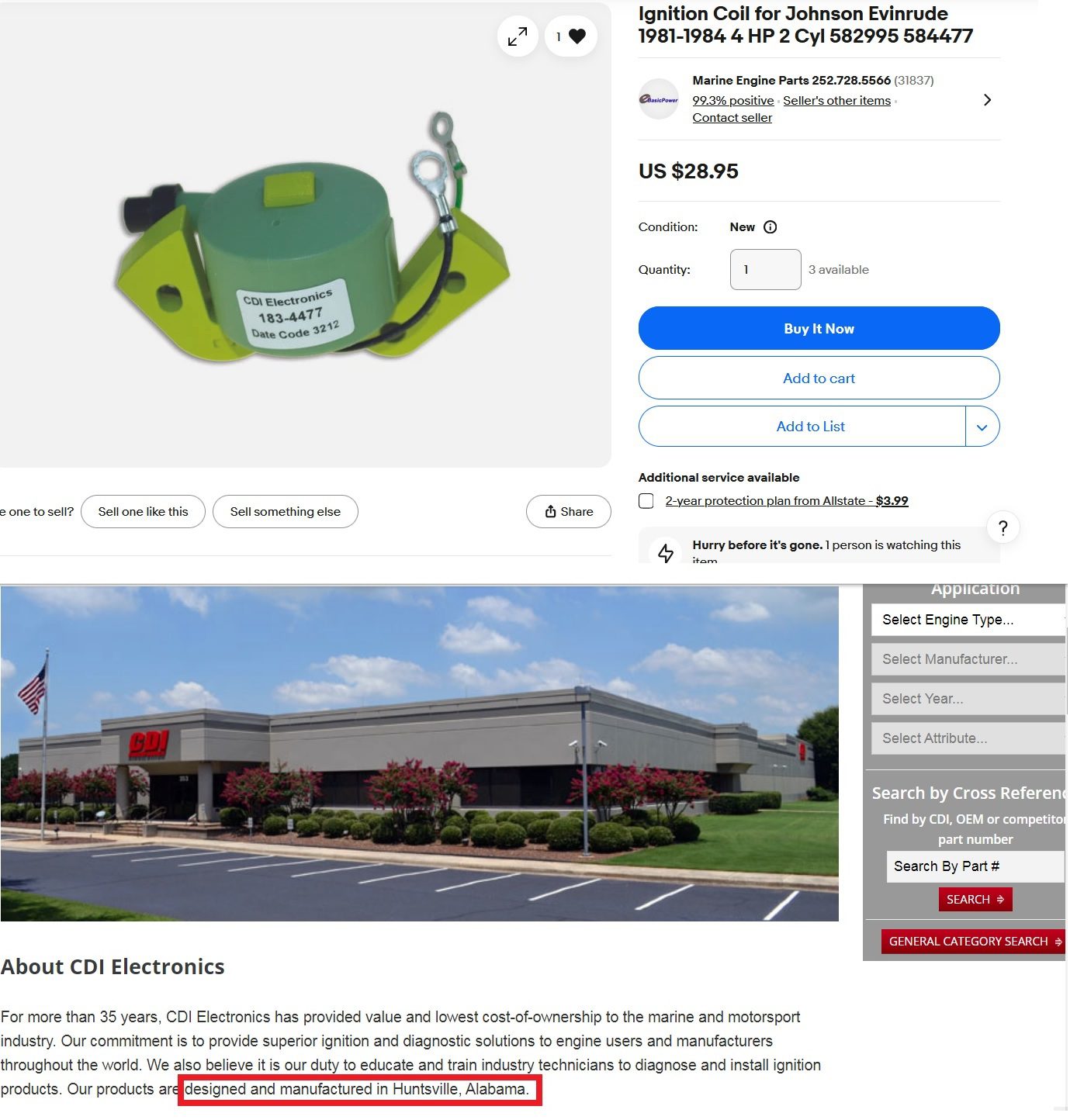 Absolutely correct David! This company makes all kinds of ignition parts for many types of outboards. Hard drive and mother boards about anything electrical they are first rate. A little expensive but good products.