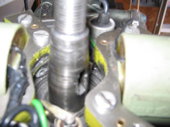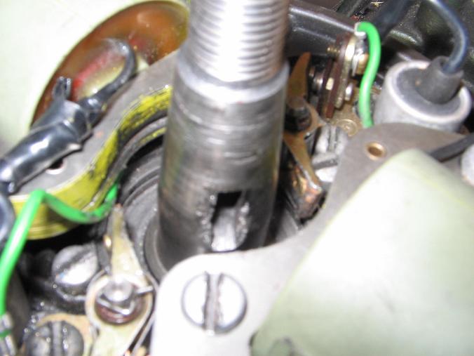 June 7, 2017 at 9:16 pm #59218June 8, 2017 at 7:59 pm #59283Here are a few pics of what I found under the flywheel.The spring is an inch and a half O.D.The washer that was there with it is an inch O.D. The spring looks to big.All that was there were just the two pieces.Does the outer retaining washer, spring and upper spring retaining washer all fit under the magneto cam? I do not know if this is fixable or not.The crankshaft is a little beat up but maybe some T.L.C.will help bring it back to life.Still has spark on one cylinder. Thanks for your time. Russ.
