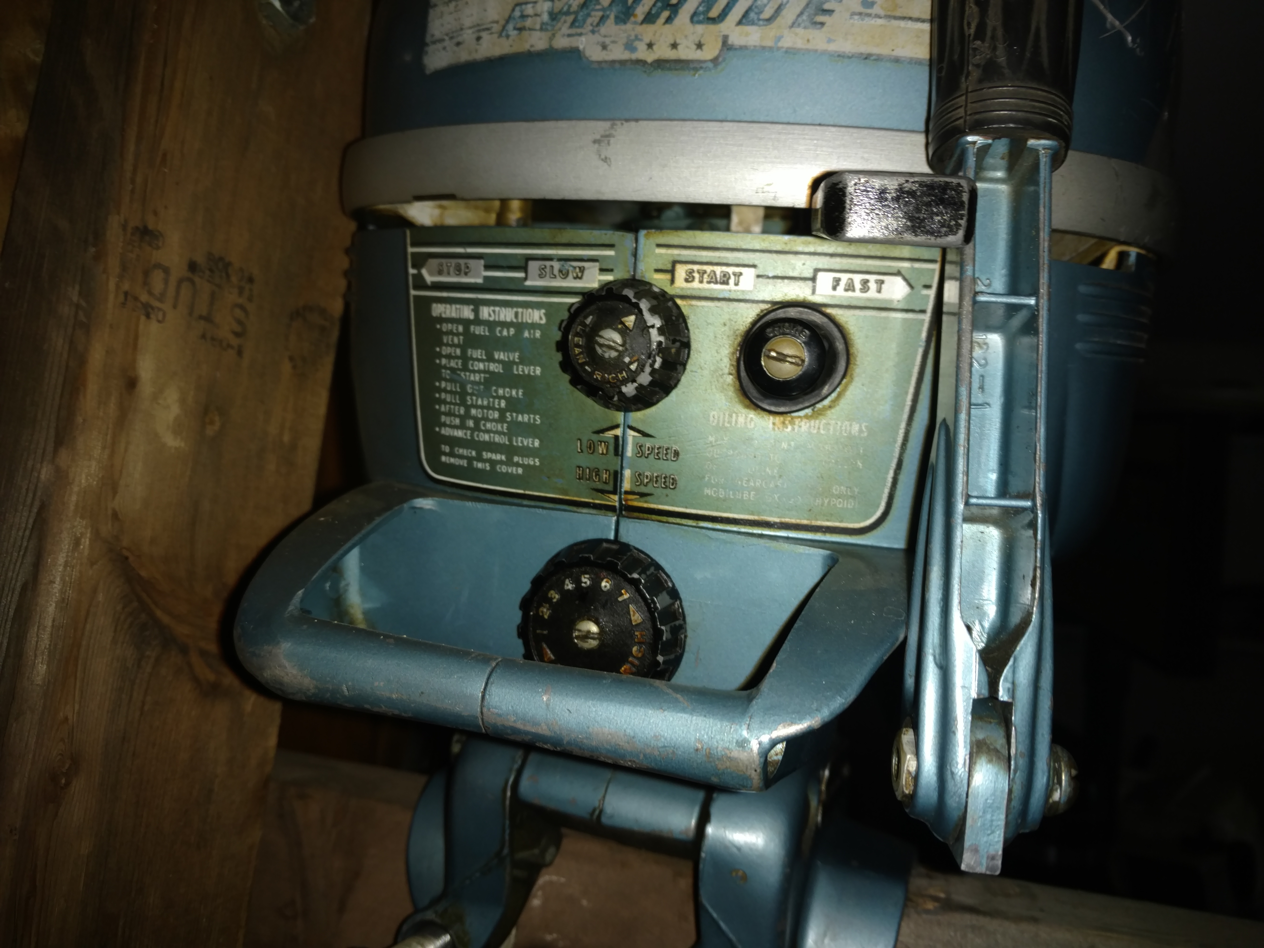 I just got an original 1953 Evinrude Light Twin, and it even has original cracked coils… a beautiful sight. Someone has taken off both carburetor knobs along with the choke knob as well. I wondered if anyone has a pic or knows what it had originally? I think it takes the painted [black in color] knobs, but want to be sure before I go looking for them. When I get it cleaned up, I’ll post some pics. Thanks!