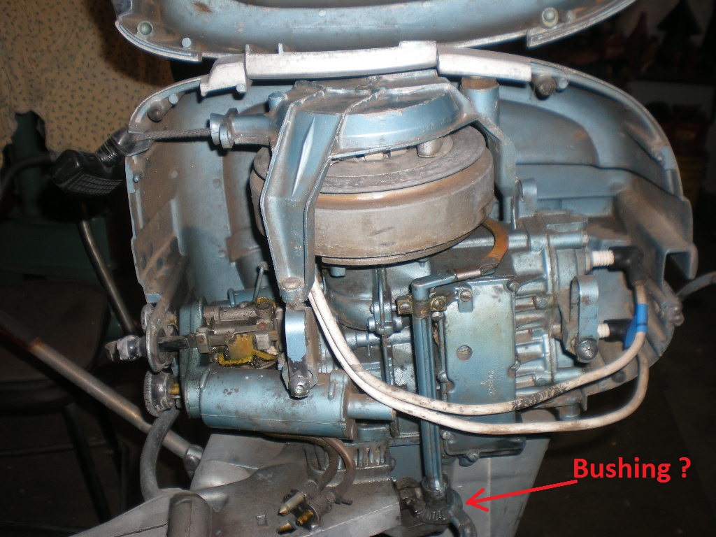 January 20, 2017 at 9:23 pm #51419The shift rod in the gear case has notches that a spring engages to hold it in gear. The nylon bushings lasted longer in testing than brass. They were also cheaper. In actual practice the brass withstood heat better, but needed to be lubricated more often. The transom bracket thumb screws also work better/longer when coated with grease. . . 😉