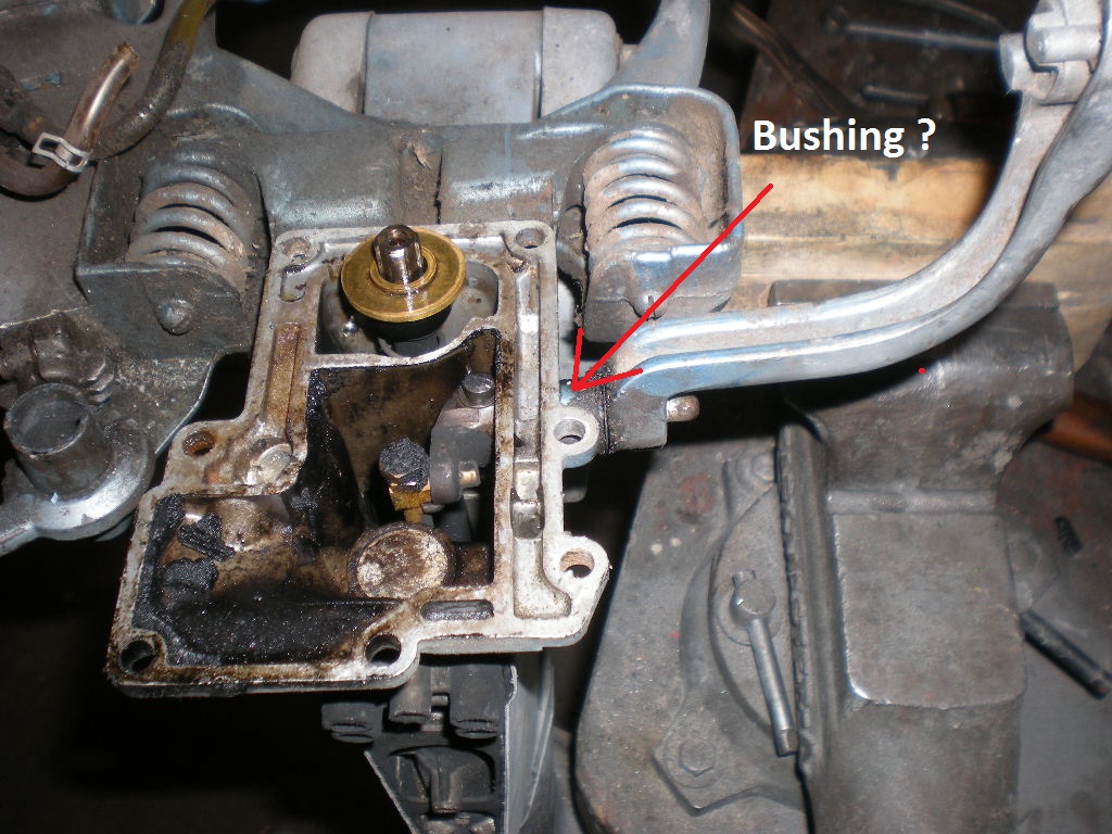 Those shift handle bushings do get sloppy, there are no replacement NOS bushings available. I would run it the way it is, be sure to replace the shift lever oring, and don’t got to concerned if you see water dripping from the shift handle, this is not big deal and has no effect on reliability. I know Mumbles has engineered some sort of bushing replacement for this issue, so you can always contact him if you decide to replace the bushing.
