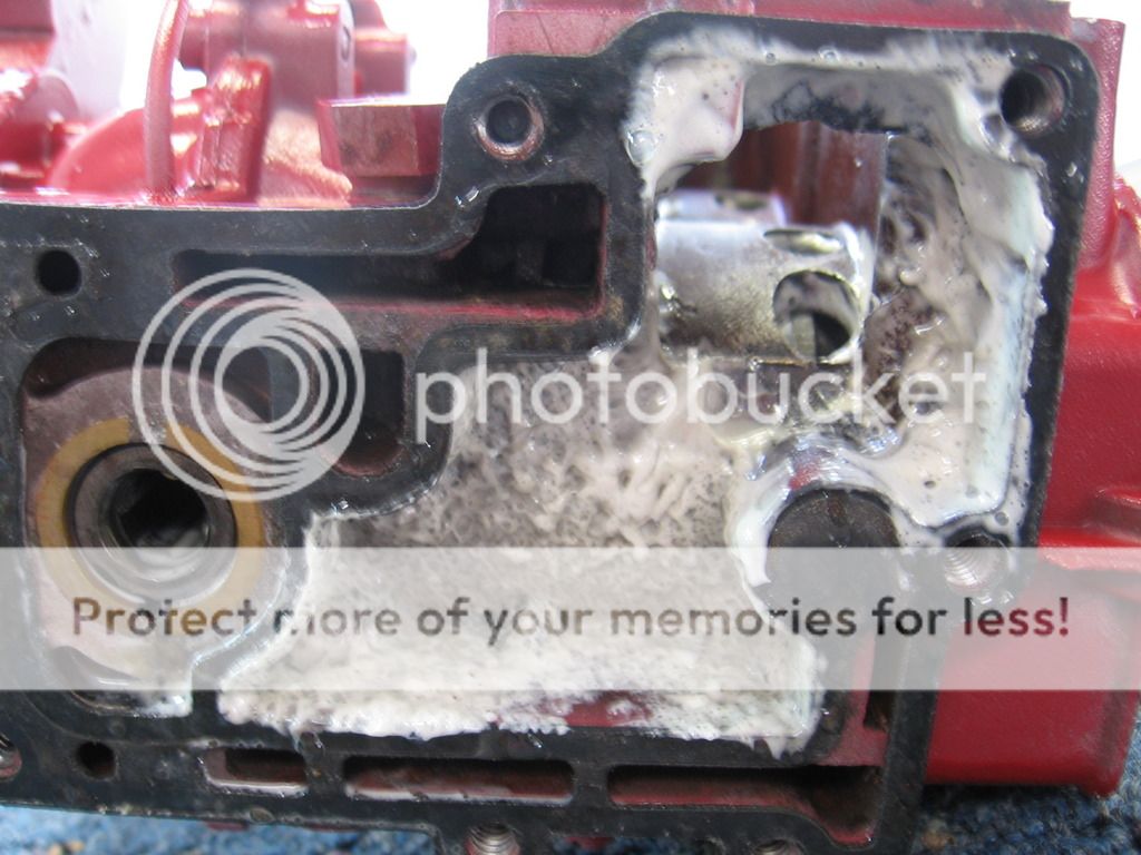 Thanks for the help.January 21, 2017 at 10:06 pm #51470Yes, holes in the exhaust cover plate are fairly common. And yes, it will squirt water into the exhaust ports and yes it will find its way throughout the powerhead and do extreme damage. OK, having said all that, it is hard to tell from here just how bad it is. Water also enters the exhaust housing right below the powerhead gasket to keep the exhaust housing cool. All that goop you see is an emuslsion of gas, oil, and water. Various factors contribute to the goop forming, mostly (cold) temperature. Bottom line is at a minimum you need a new plate and gaskets. If you want to go in and check the con rod bearings, that is your call. But when a rod comes sticking through the side of the crankcase, the party is over.