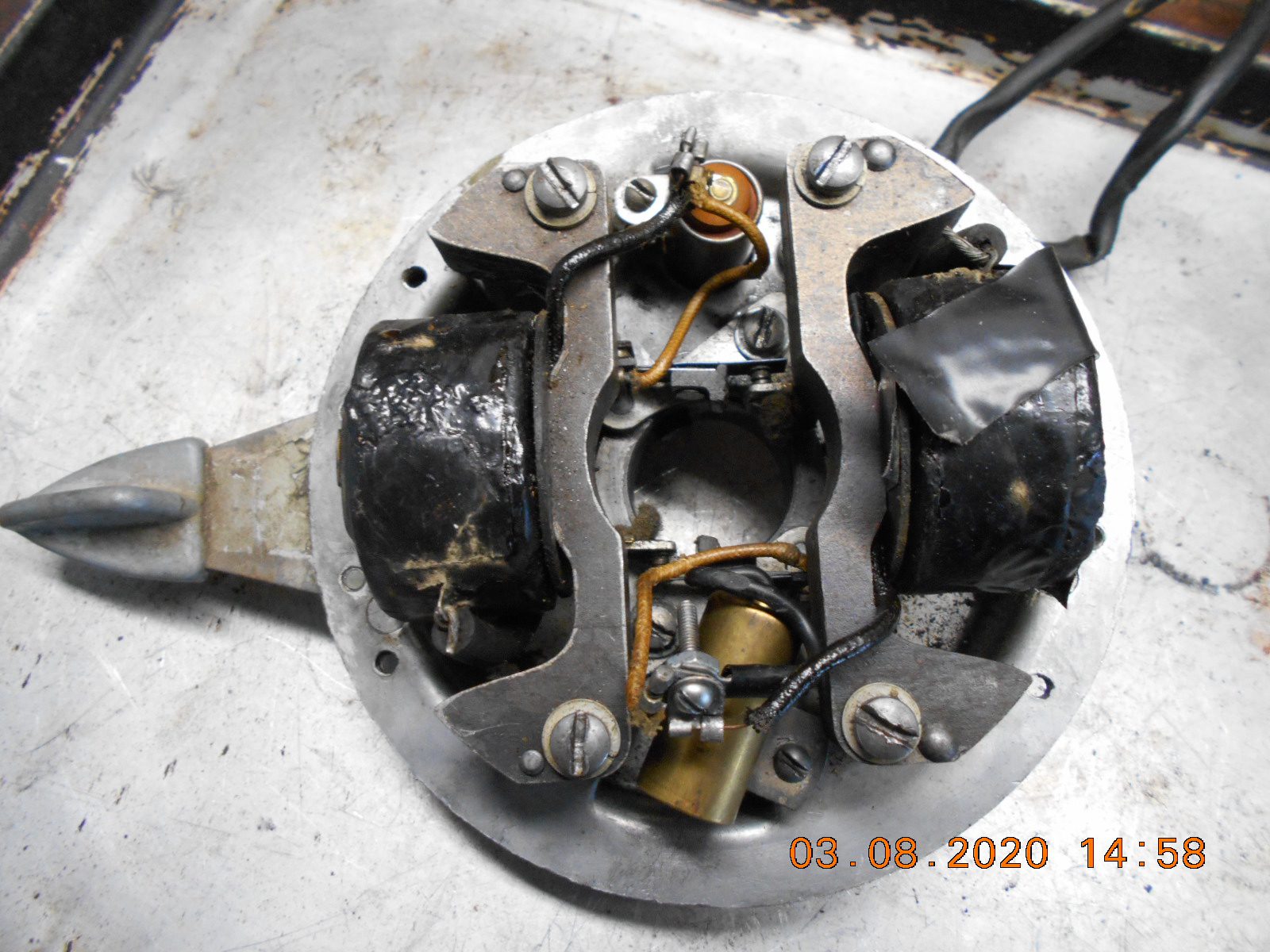 Thank you Mumbles. What is confusing me is that the magneto base won’t “lift out” and I don’t see what is holding it in. I don’t want to pry on it and risk breaking it.