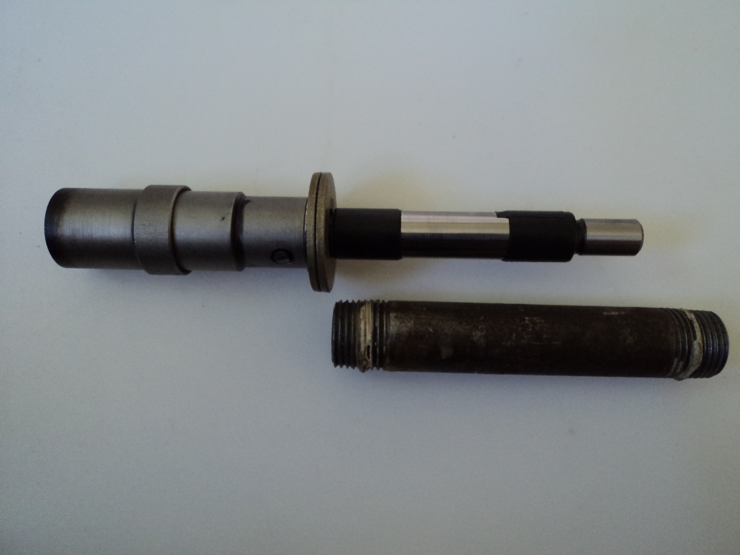 August 16, 2016 at 2:24 pm #42181Makes sense. I cleaned it out and inspected with a light in a dark room. I see no evidence of corrosion or a broken spring–though it could be broken in ways I can’t see. With a press I have closed it up to 6.728, so there is about 40 thou to go. I decided it would make sense to use a tube and press directly on the two halves of the spring housing, because I’m not confident that the cross pin that apparently holds the shaft in place could not be sheared. Am also wondering if there is a possibility of compressing it too much and buckling the spring (?).