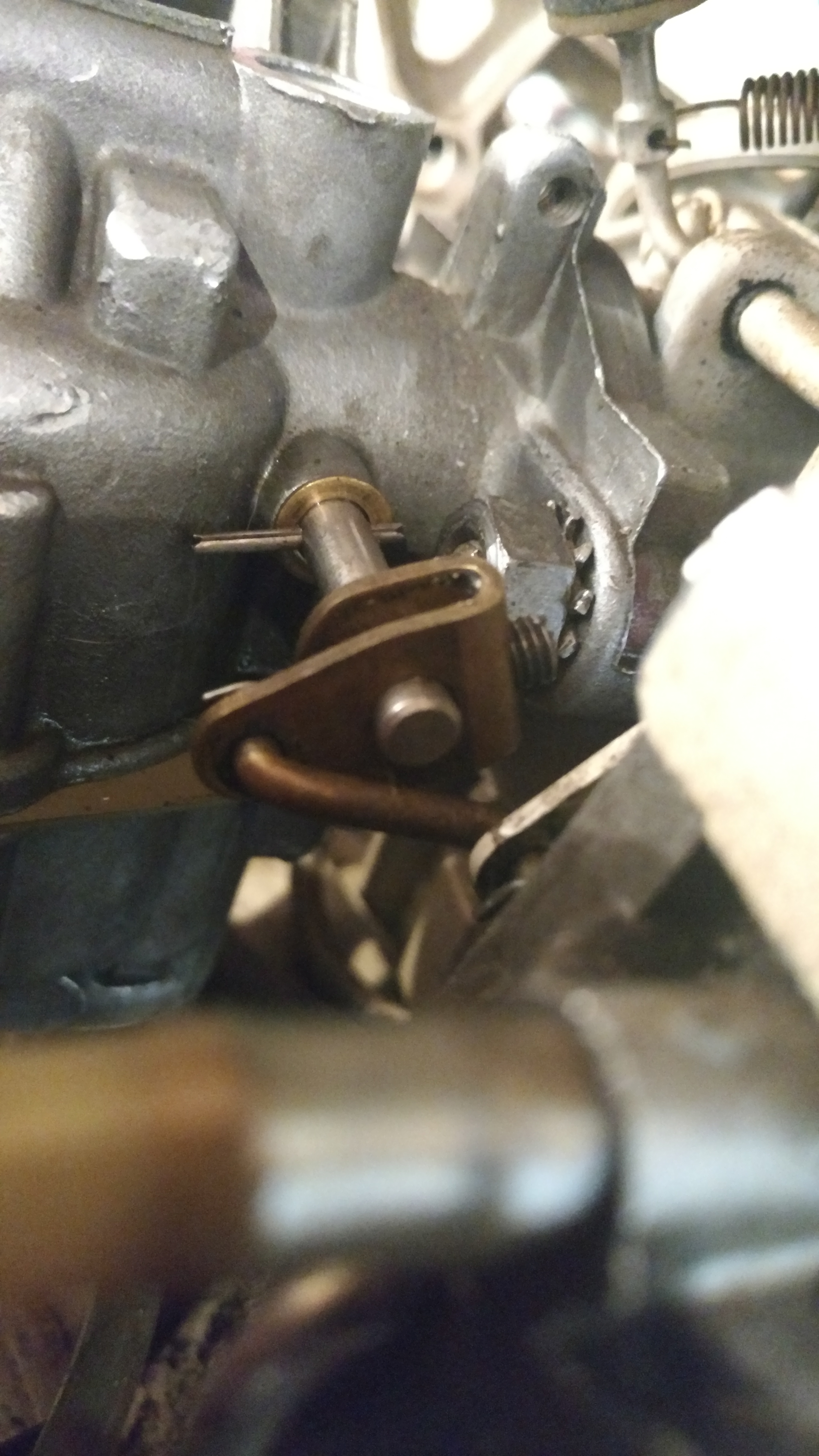 July 15, 2016 at 1:11 am #40225Here, hope, is a picture. As I said, both the shaft and linkage are round. It does not start to even open by the time it hits indented line on the ignition advance. If I set it down to that point, so it opens more with less spark advance, it will not allow it to reach full RPM with the throttle open because the spark is not advanced far enough at that point.