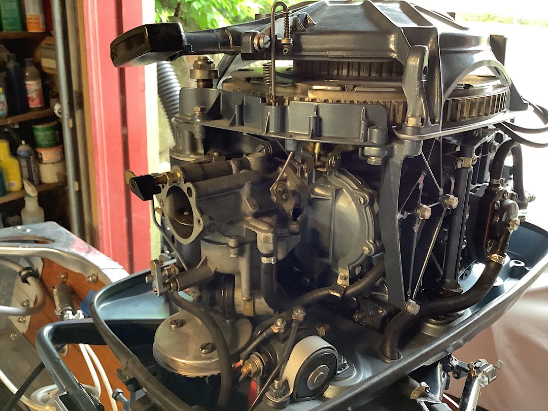 It started and ran the usual 10 seconds in neutral then died, so I got it started and quickly shifted into forward (in a tank) . It stayed running longer, but was was backfiring through the carb. I couldn’t idle it down, and when I did it would die.