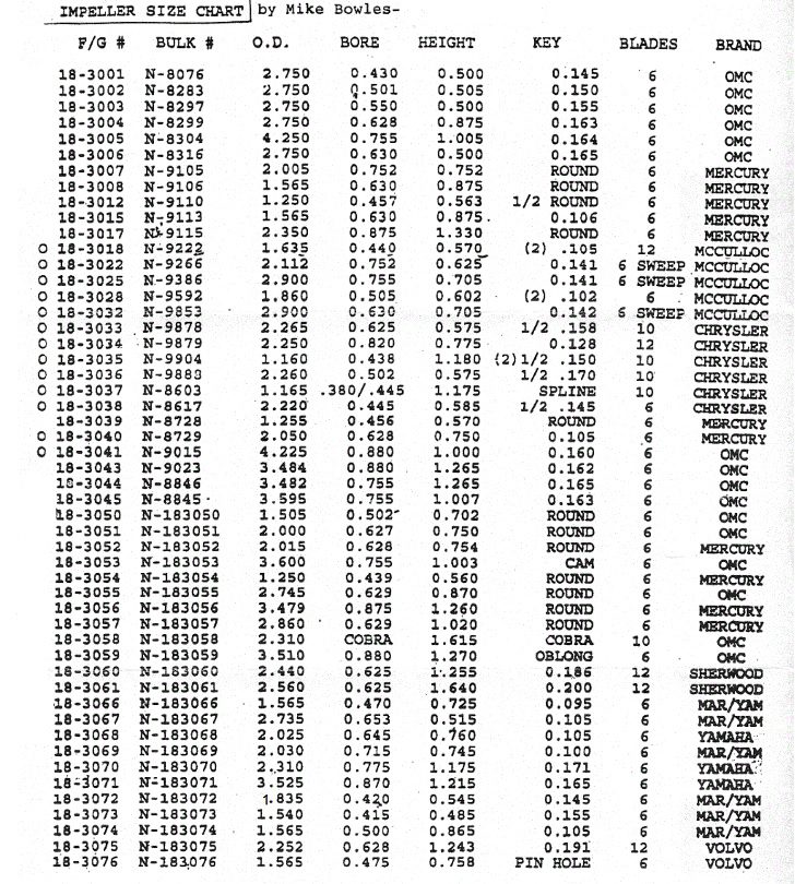 August 25, 2021 at 5:39 am #245431I have Elgin Microfiche, from when Mercury bought out Force, which was Chrysler and West bend before that. I think their reasoning at making the microfiche was so they could get rid of all the dead stock they had. There are a few impellers still available. If you give me your model number, I can look it up.