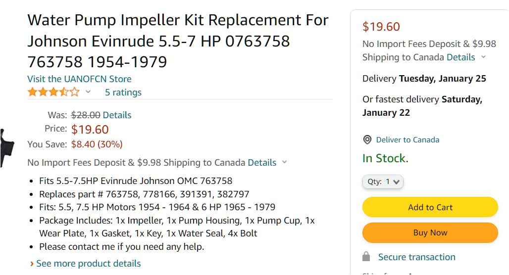 January 7, 2022 at 4:41 pm #252542January 7, 2022 at 4:59 pm #252546January 8, 2022 at 9:35 am #252568Well I’ll be darned. You learn something every day. Now my question is this. What about the impeller only? Or do you need the whole kit just to replace the impeller on the early 5. -7.5s? think I know the answer.