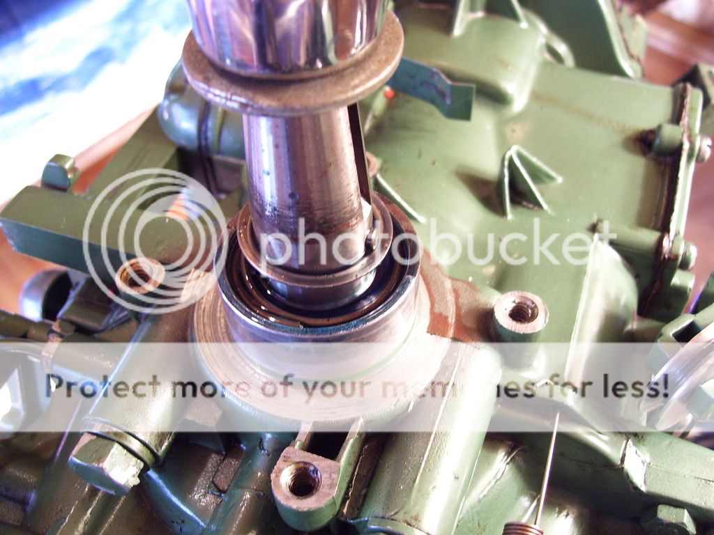 Used blue Walmart TCW3oil and noticed small bubbles at forward end of the seal. I saw the bubbles when the shaft key is generally to port as in the picture above. Looked like they probably were from the vertical drain slot. To check I removed the seal spring and bottom washer and left the carbon seal in place.