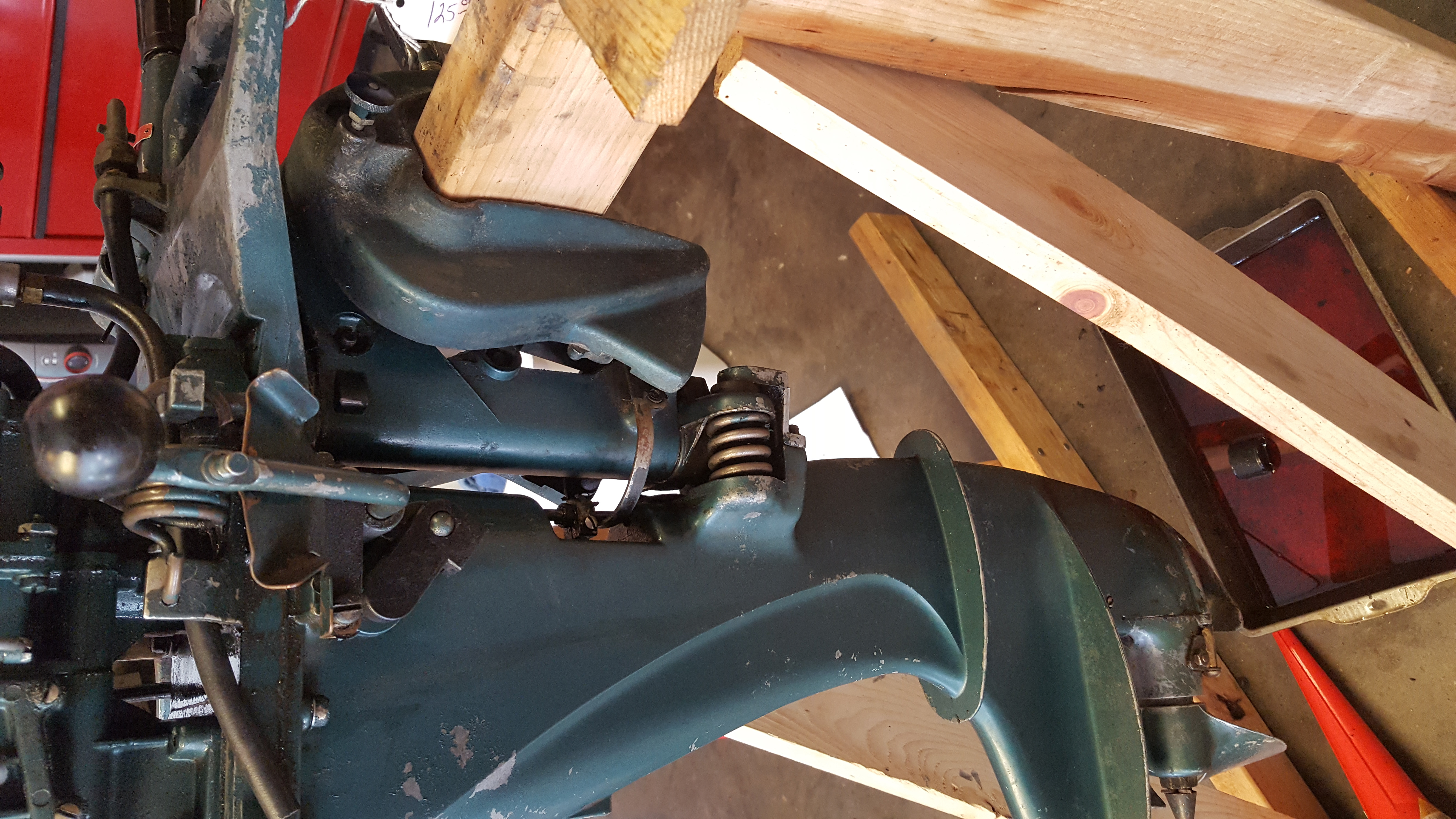 First, be sure it’s in neutral or forward. Then be sure the tilt lock spring is pulling it down when the motor is in neutral or forward. (disclaimer – my 1959 may be a little different)