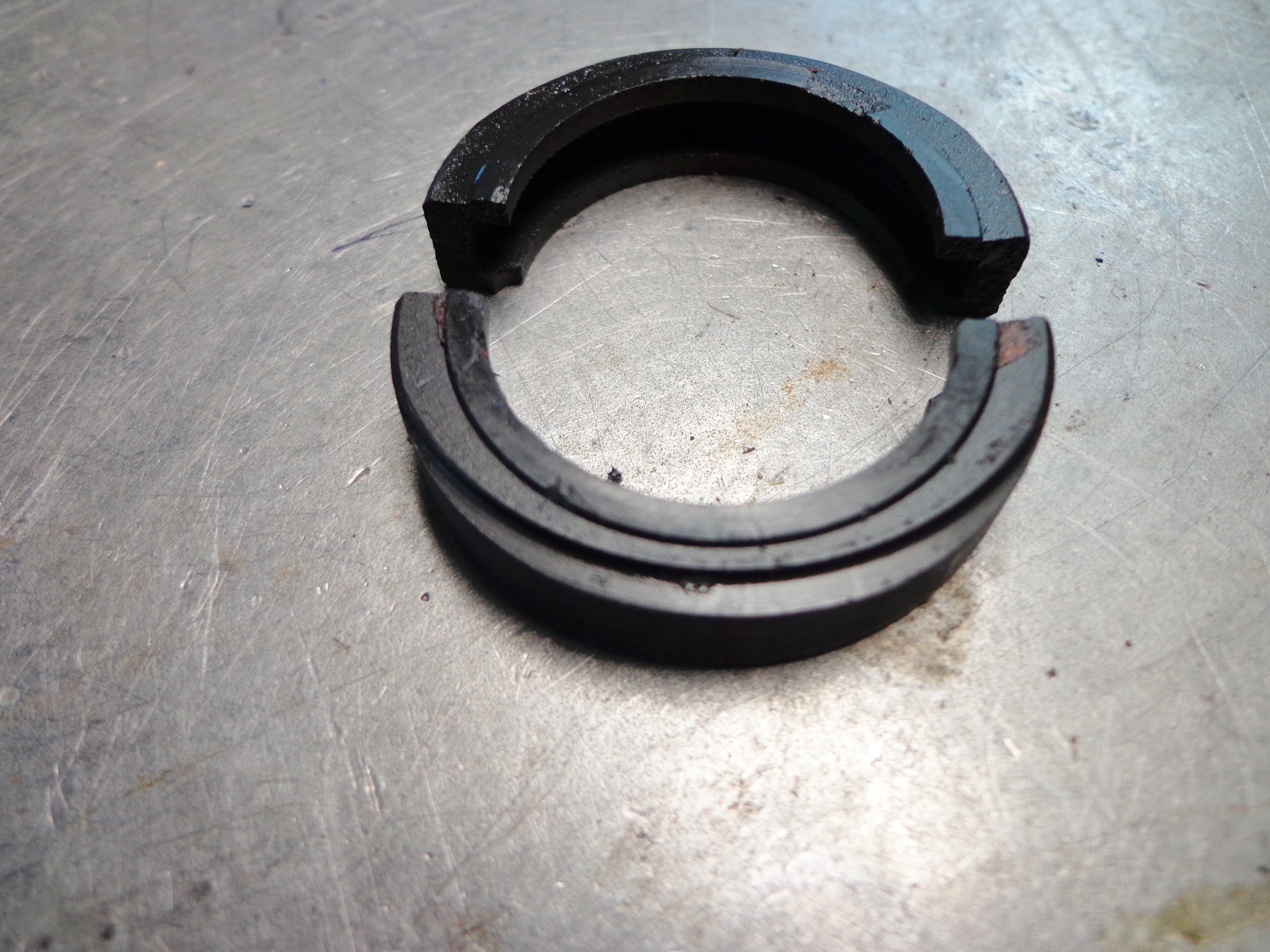 February 11, 2017 at 2:39 am #52807I’m pretty sure the carbon seal was installed the proper way except the quad seal was placed between it and the springs cup washer. The carbon halves were kind of cockeyed when I split the cases so the one half must have been rubbing on the lower bearing. You can see the wear pattern in the one half. This might explain why the bottom piston was scuffed a bit to. The lower cylinder was probably running lean or else water made its way in to wash the fuel mix off the piston.