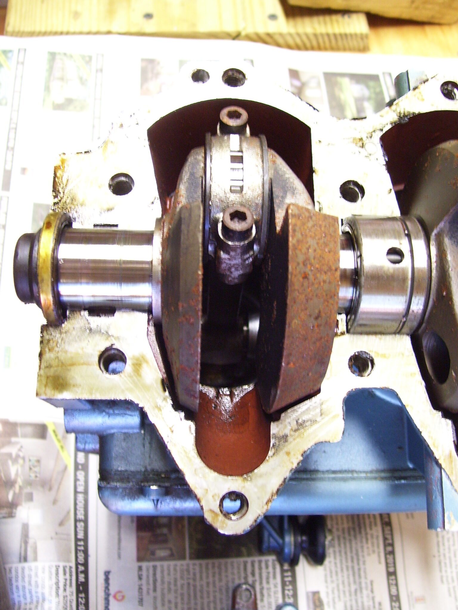 Yes there was some rust on the lower crank seal surface. You can see where the seal was riding on the crank in the first photo and the crank seal surface is shown in the second photo. As I recall I smoothed the rusted surface a bit and let it go at that. The powerhead did not look like it was apart before.