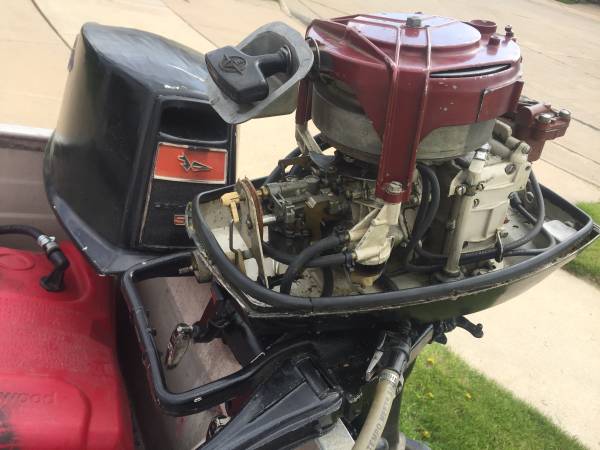 It has a fair amount of weight on it – ’77 Merc 1500, a pair of ’57 Big Twin 35 hp, a ’49 Merc KE-7, and a ’64 Merc 110. Hard to see, but there is a parts OMC V-4 85 hp sitting on the lower platform as ballast. Probably well over a thousand pounds