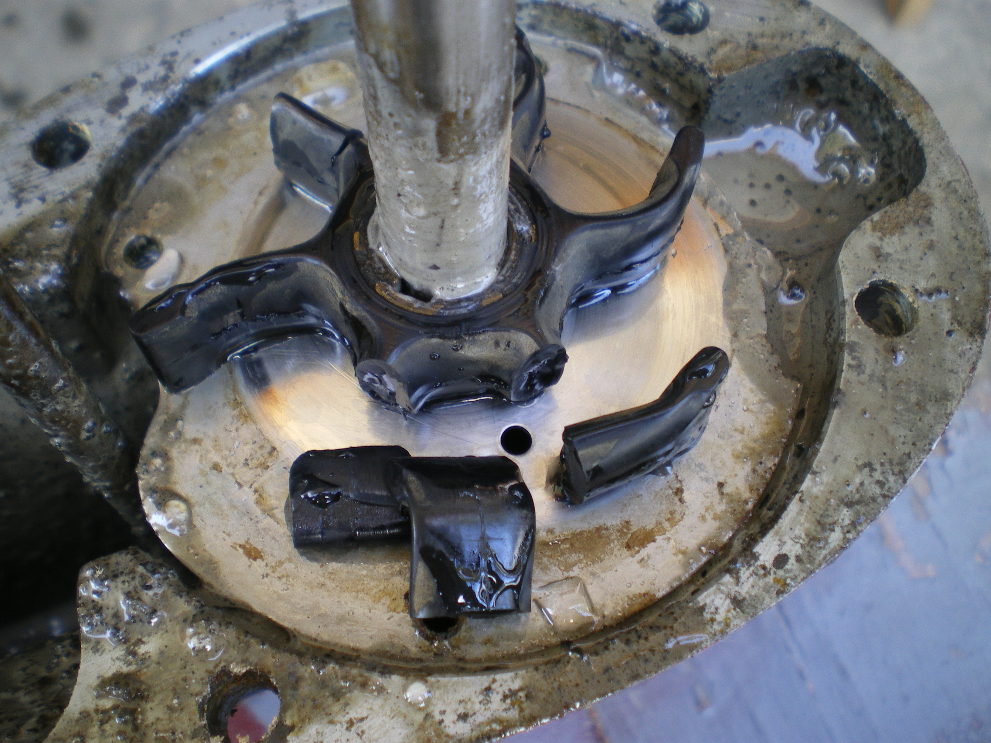 As far as the impeller vanes righting themselves when the engine runs even if they get turned backwards, sometimes they do and sometimes they do not. I have had several motors apart OMC and Mercury with various sizes and shapes of rubber vane impellers and have found a number of them with some of the vanes bent backwards after being run. The latest one was a ’73 Johnson 25hp. It was still pumping OK, but I changed the impeller as a preventive measure and found this when I opened the pump housing. This motor had been running on a coworker’s pontoon for 5 years and was brought to me for service. I ran it in my tank before servicing the pump also.