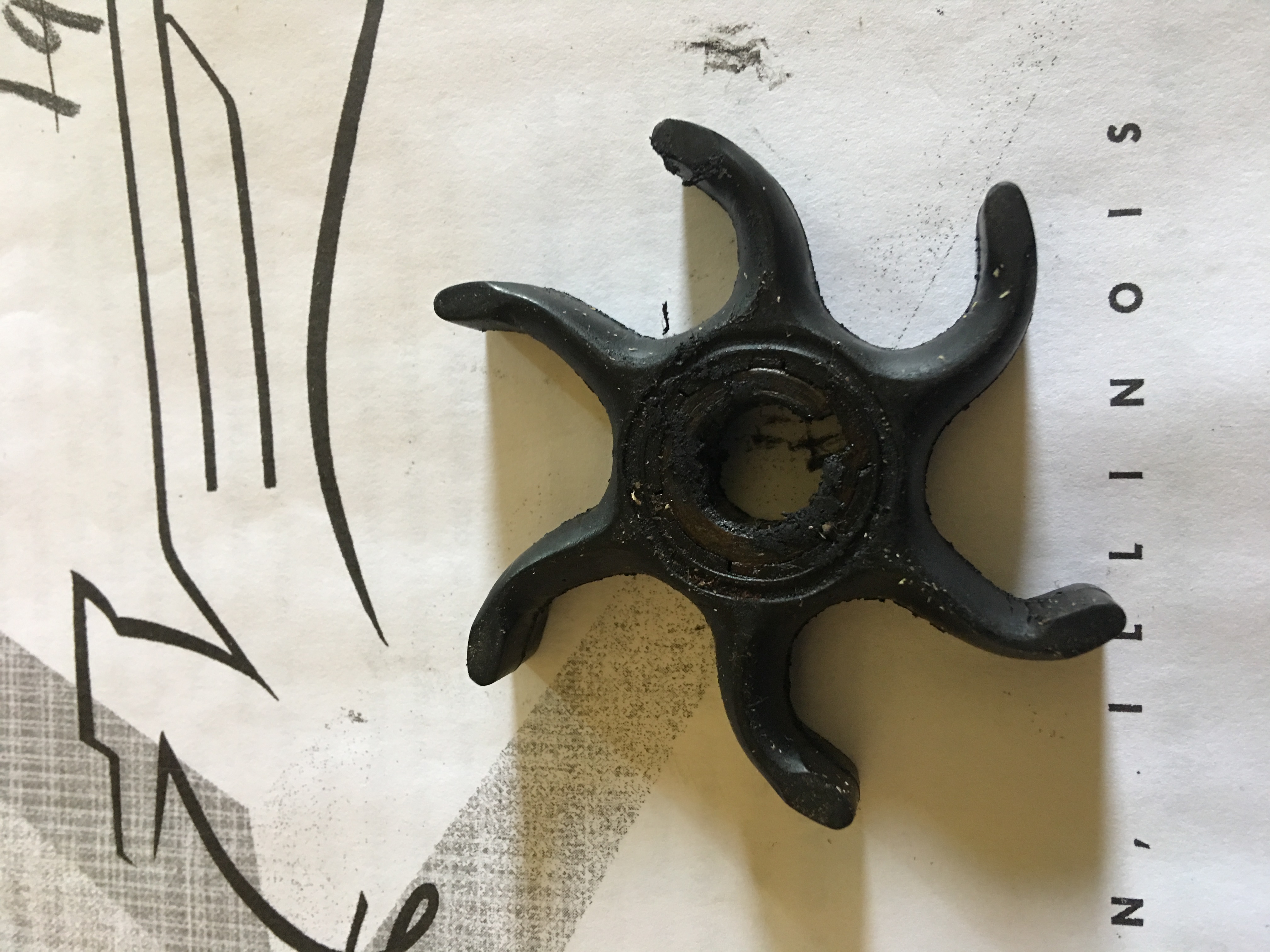 I would toss that impeller. If those veins don’t straighten out, by the time you grab your camera, it’s shot. Impellers are cheap anyhow. One thing you want to be sure of, is that the wear plate has a good seal, to the gearcase, or you will pull air and less water. I have actually seen how critical this is, as of recently. Apply a light coat of sealer under the wear plate before you install the impeller. It won’t hurt to put a light coat, between the wear plate and impeller housing, either. That will ensure a more positive flow of water (only) to go through your cooling system. I have seen the water tube socket (up inside the exhaust housing) clog up with corrosion too, so make sure that is clear. I keep an old flex housing from a lawn mower throttle cable around, just to rod out the water tube all the way to the powerhead. A clean water passage will allow this flex housing to reach all the way to the powerhead, if the passage is clear.