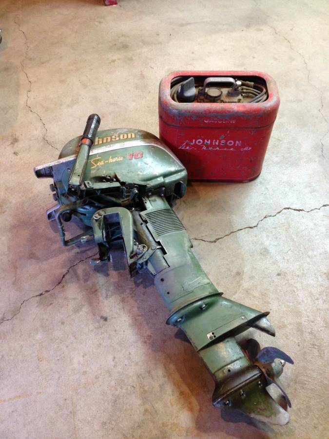 The 1954 had the more common shift selector lever off the side of the motor, but still had the raised seahorse logo on the side.