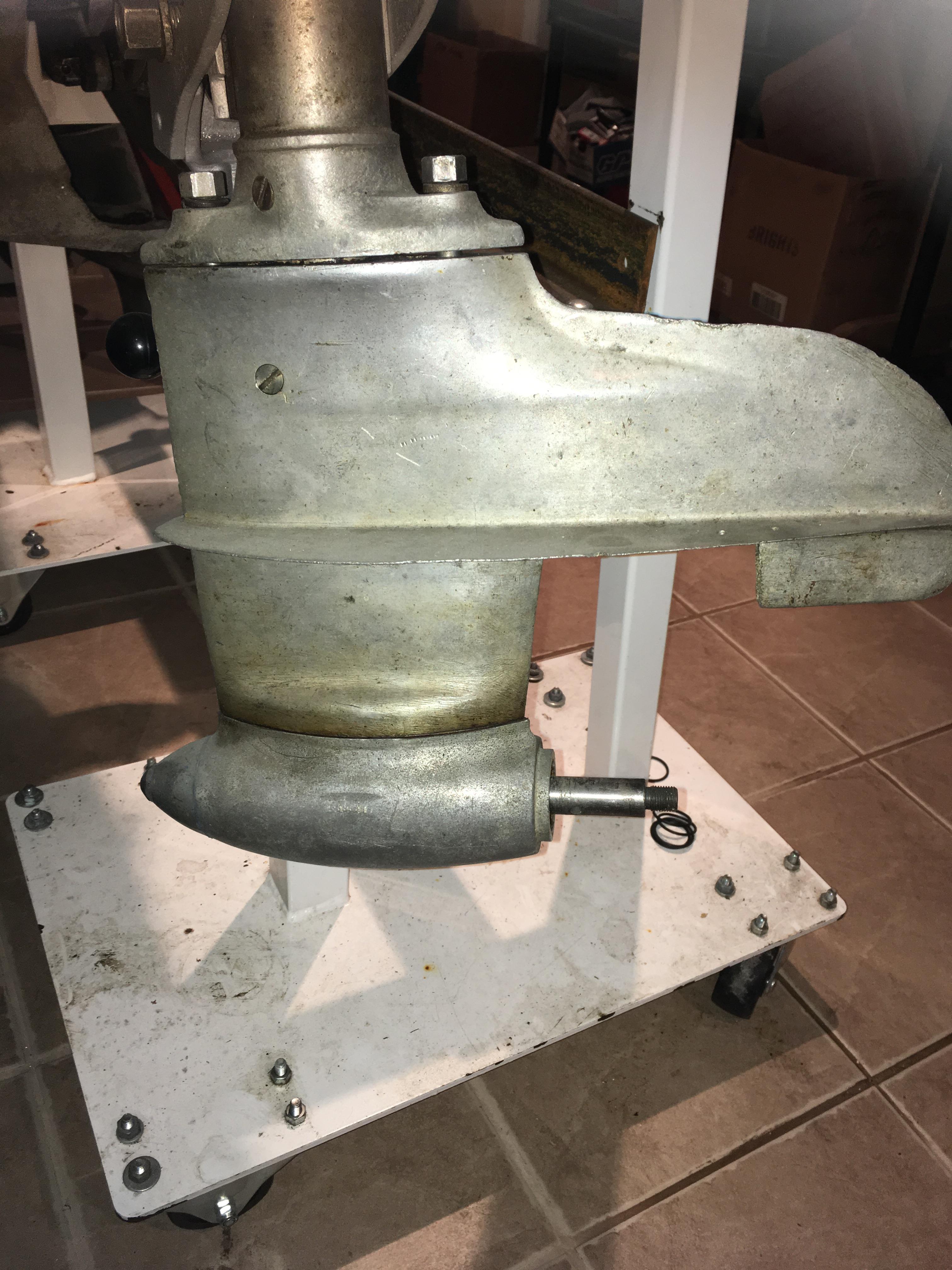 This gear foot is on a Hubbell B motor, patterned after a Johnson SR. the gearcase is a right hand rotation. The nose cone is missing. The bore in the front of the case is 1-1/2" without threads. It is a bottom loading unit.