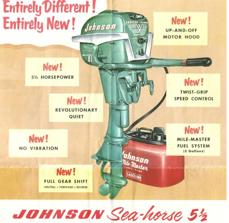 Your first picture shown is a 1954 cowl. In ’54, they had the silver trim, with wing nuts. Looking at starboard side of cowl, in the bottom left corner, they had the Sea Horse picture on top, with the "Sea Horse" script BENEATH the picture, and then the 5 1/2 number beneath that. ON the front of the cowl, beneath the rope start, the ’54 either has a Sea Horse picture, with "Sea Horse" script, OR they have starting instructions. Im not sure on difference there sorry but have seen both.
