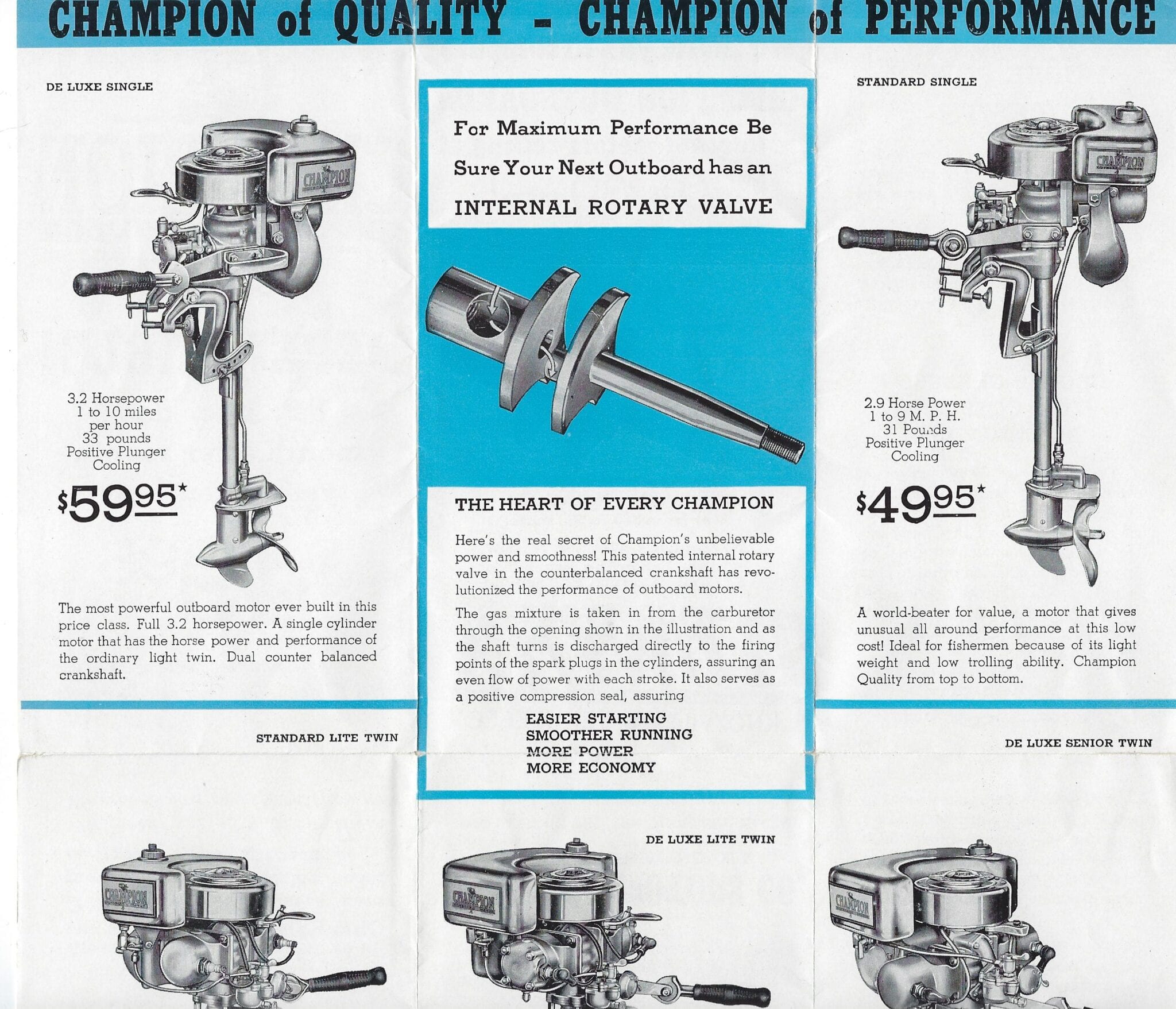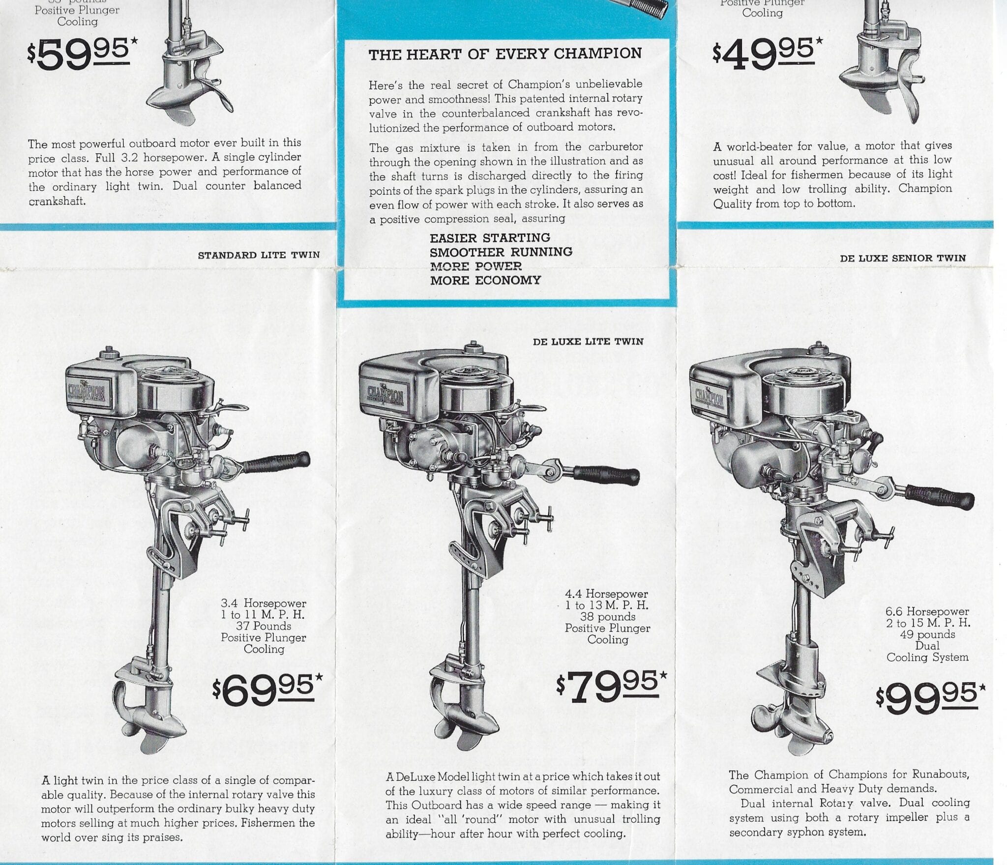 Interesting – this Champion brochure does not show the exhaust tube on the Deluxe Lite Twin, but mine has the tube.