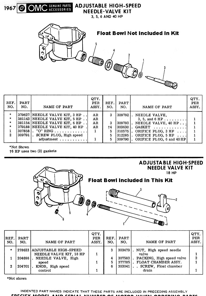 But the fixed main jet does NOT seem like an improvement to me. I can see some advantages, especially in the hands of users who don’t know how to adjust mixture, but as a long time engine tinkerer I like the ability to optimize the mixture for different conditions.So, finally getting to my "ask," what is needed to convert OMC carbs to an adjustable main jet, and is there any strong reason not to do it? Can an older float bowl be swapped on? Can the existing one accept a needle and it’s gland and packing? (Not considering here the need to drill some sort of access hole in the pan…)