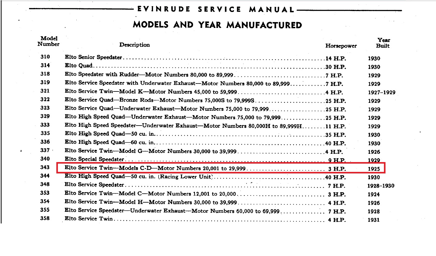 It seems that that range is left out of most publications.The motor came with the original paperwork which included the warranty card. Dated July of 1925. I bought the motor from the grandson of the second owner. The second owner acquired it from the original owner when he bought his lakefront house. The motor has been in the same garage since it was new 91 years ago I felt a little bad taking it away.