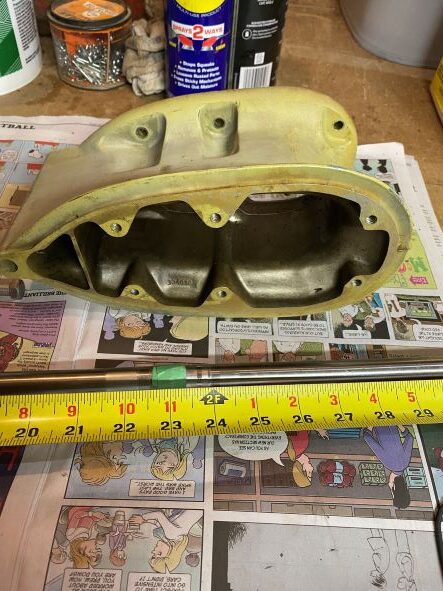 Hello all, I’m fixing up a ’55 Big Twin 25hp. It has a 5″ gear case extension (long shaft) which I hope to revert back to a standard shaft. I’ve removed the gear case extension and drive shaft both of which appear to be in great shape, and would happily trade them (and bolts) for a standard drive shaft in good shape.