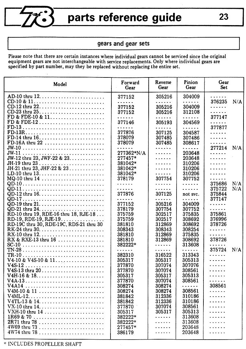 December 28, 2022 at 10:02 am #270351December 28, 2022 at 11:20 am #270360I had the individual gear numbers when I restored my RD-18 a few years ago but can’t seem to find it at the moment, except for the pinion gear and bearing assembly which is part #375835. I’ll keep looking for the forward and reverse gear numbers.