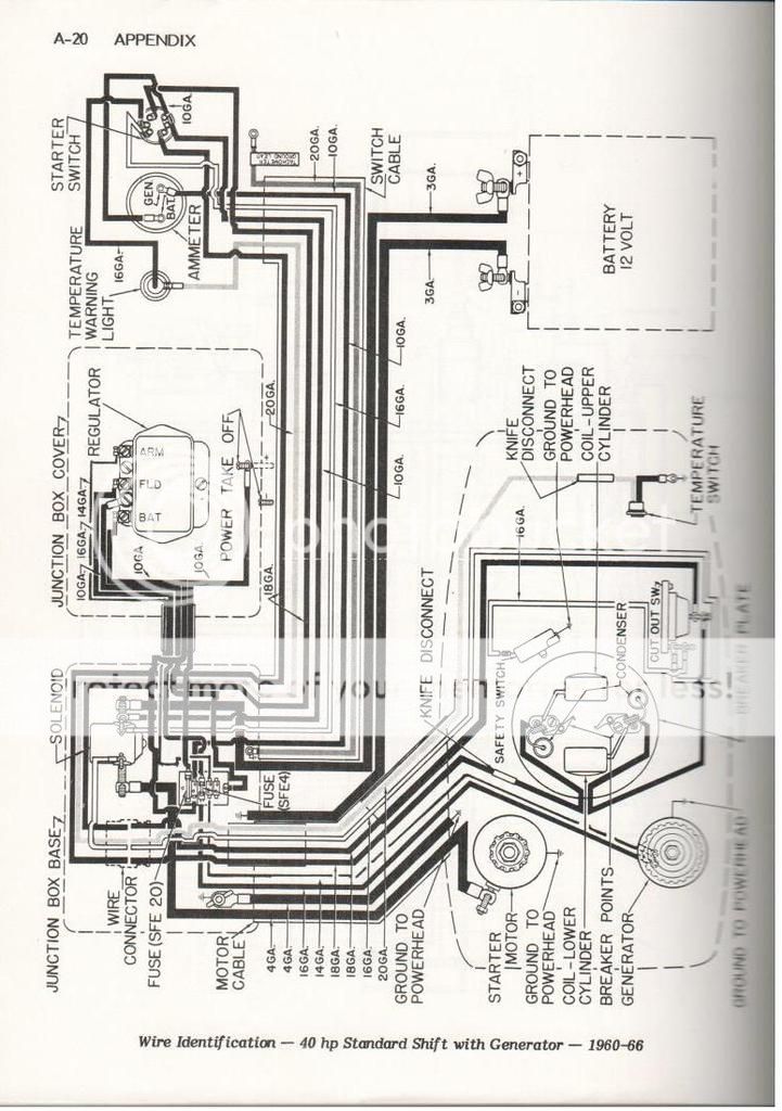 July 1, 2017 at 6:45 pm #60765quote wrenchero:is a starter switch for a points ignition different than one with a newer style electronic type ignition?The aftermarket manual I have shows all 1963 40 HP have standard magneto ignition, whether it has the electric push-button shift or not. The contacts in the run position are open and they short the points together in the off position. Some models back then had a "Hot" idiot light that lit if the motor overheated. If yours has this, the ignition switch also needs a contact from the ignition switch that makes to connect the battery to the hot light circuit when running – or you could forget the idiot light. Of course there is a contact to connect the battery to the starter solenoid while cranking.(Note the solenoid looks like a Ford part but it’s wired different inside to the small terminals – do not sub Ford part.