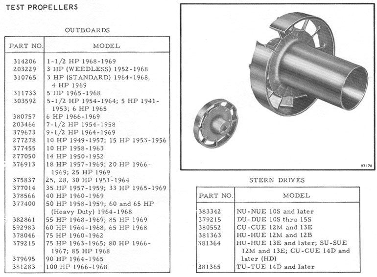 Can anyone tell me what test prop would go with a 58 Javelin? There are quite a few on Ebay identifed as OMC test prop with a part number such as 380757. Or if someone could part with one.