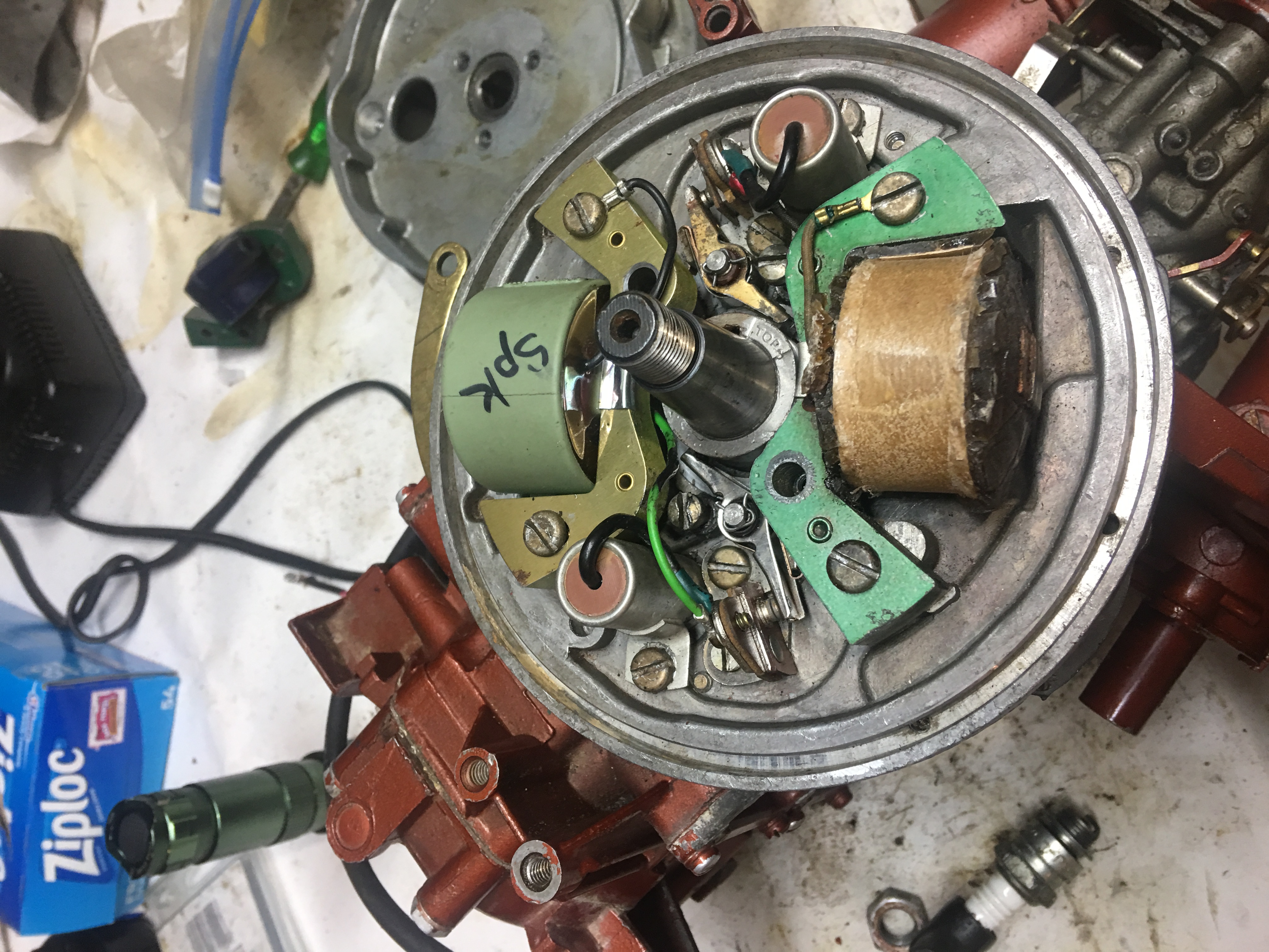 Ill assume you know that your TOP cylinder coil is NFG. I would also order new condensors. Those are originals. The red paper top ones will eventually fail, if they are even good right now.