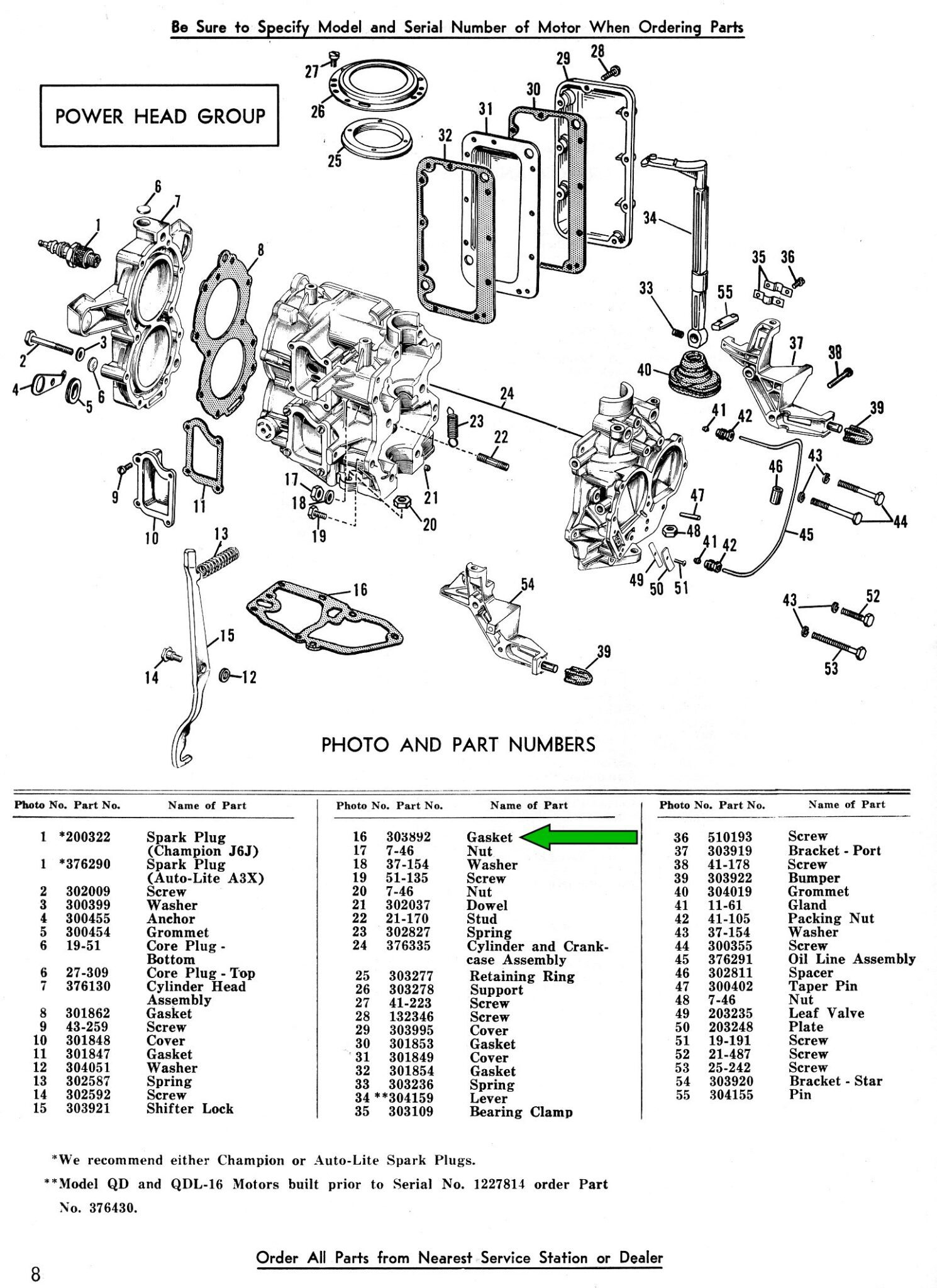 Unclear for sure. I can’t see your parts book, but I’m surprised that 377070 gasket and baffle kit appears on a 1955 QD-i6 parts book, or for that matter, even compatible with the 10 hp. That mod came about in later years in response to powerhead failures on the 15 hp due to crankshaft seal failures.