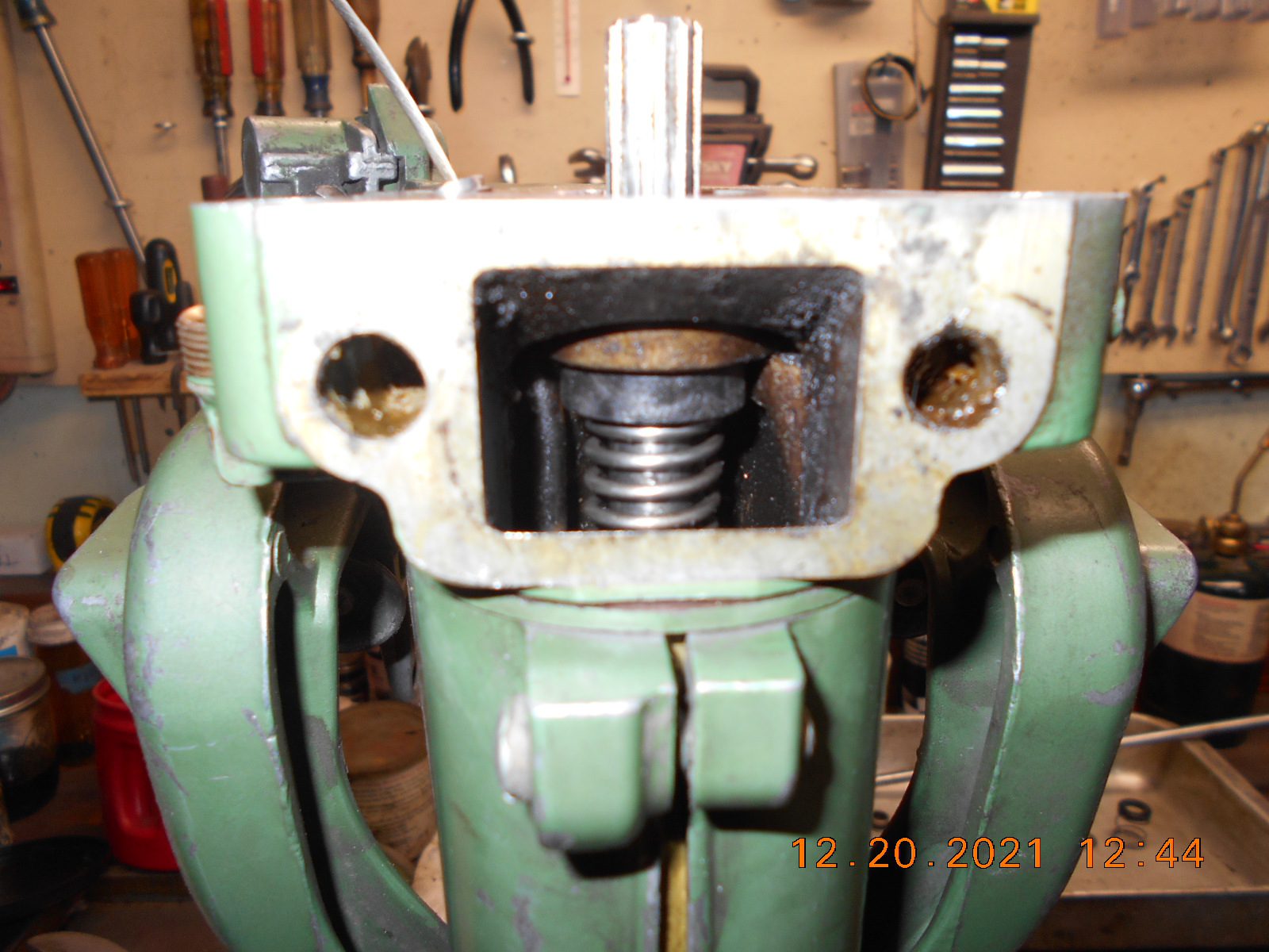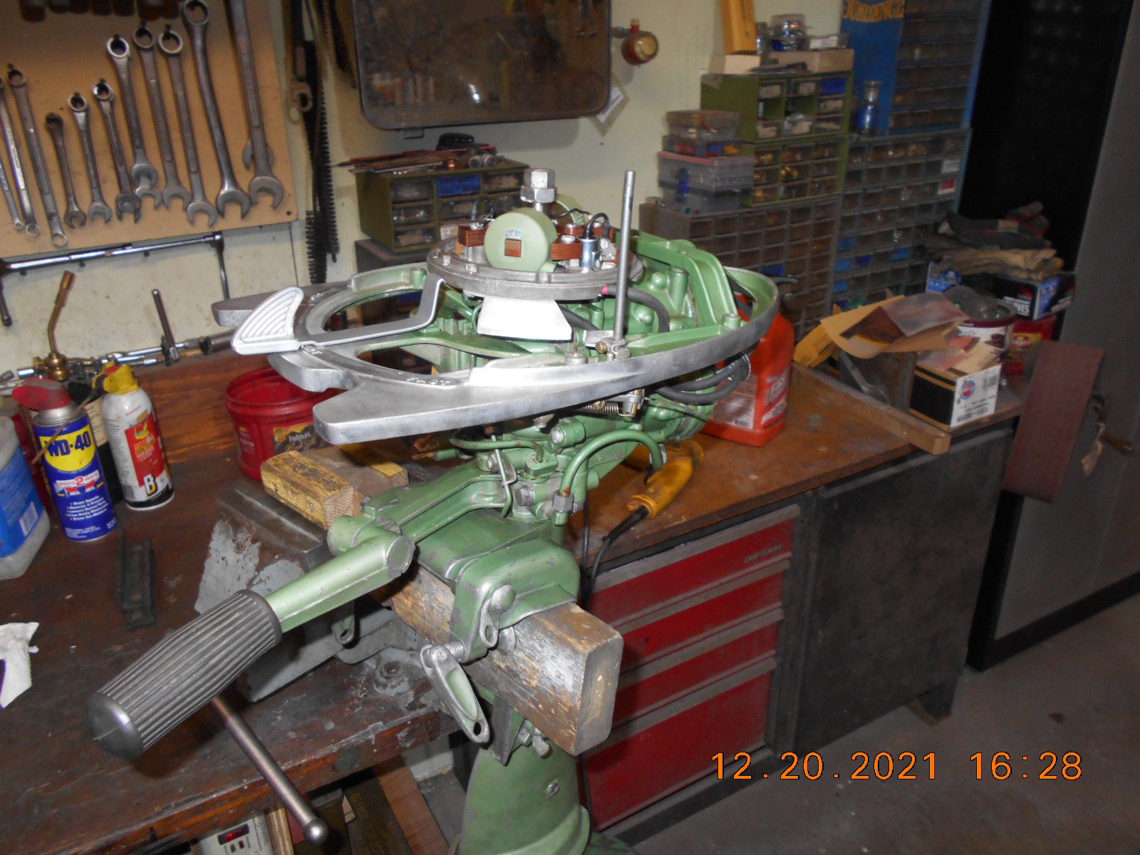 The powerhead is now reinstalled. The motor seems to turn over stiff with a