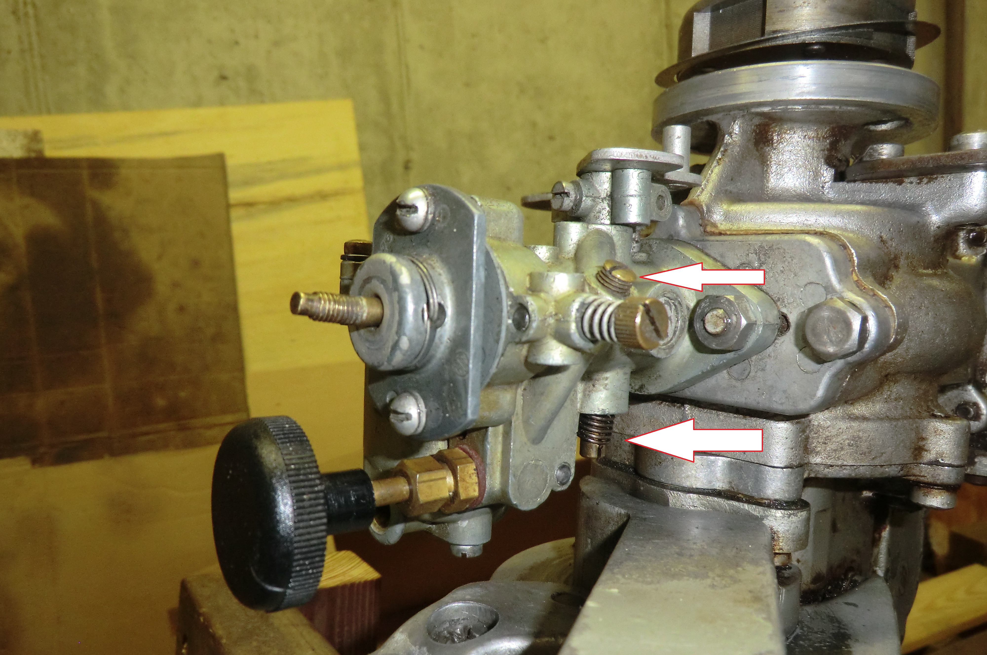 the bottom one is the throttle shaft end no adjustment. the top is the idle pickup tube no adjustment just clean.