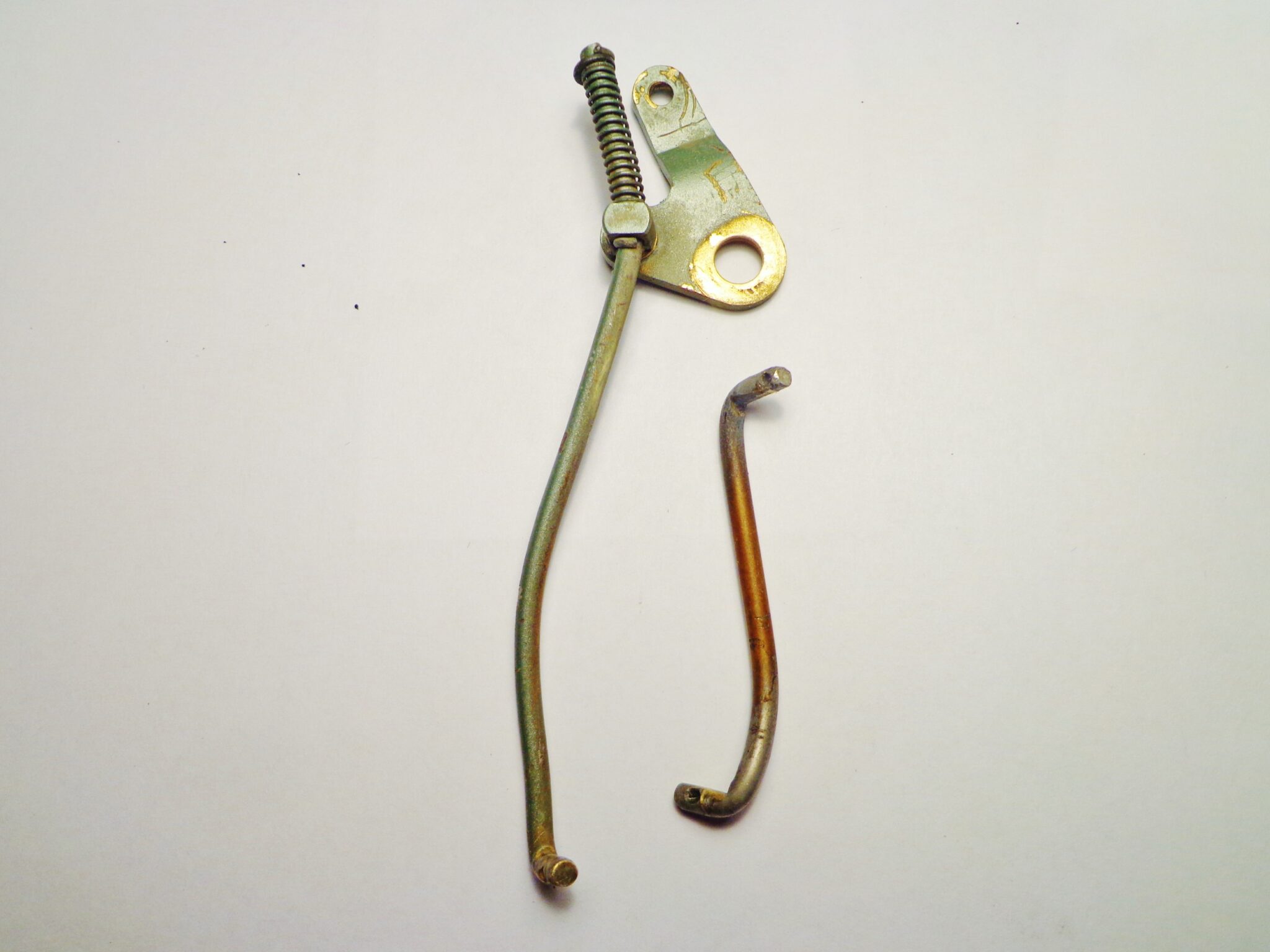 There should be a small piece of stainless wire bent into an ‘S’ shape at the ends of the brass rod connecting the carb to the mag plate. A small pair of side cutters are your friend here to get it straightened out and removed.