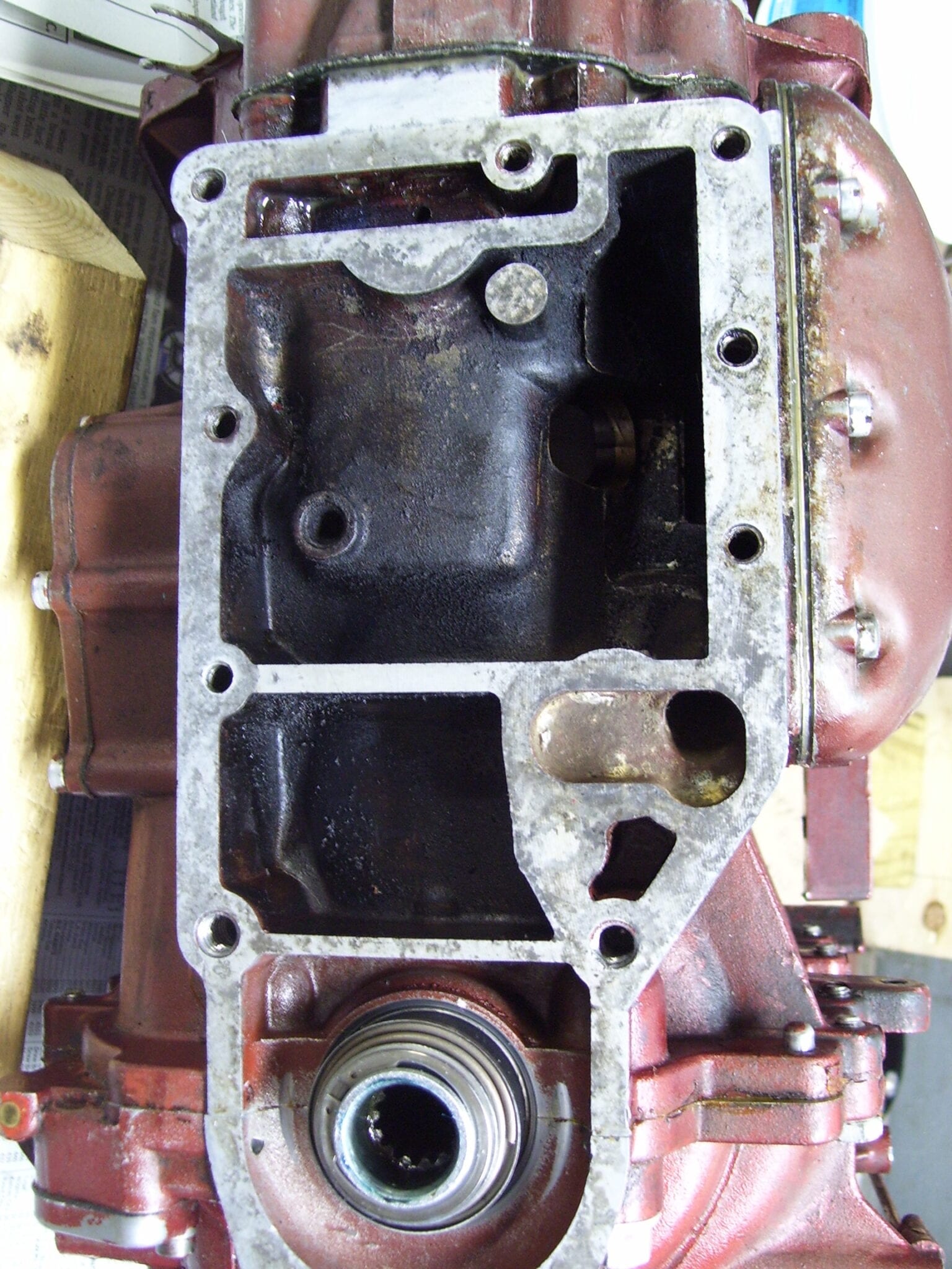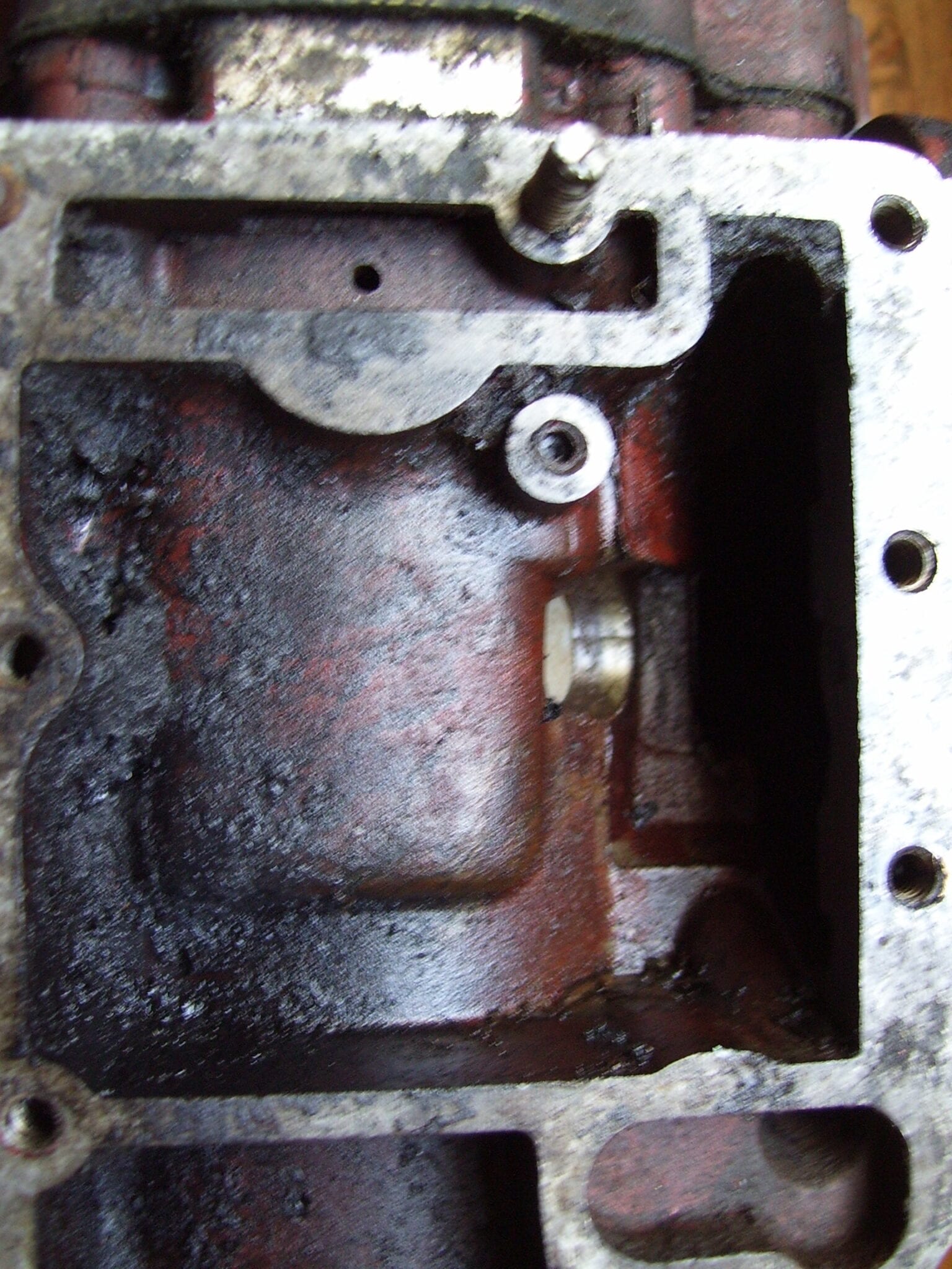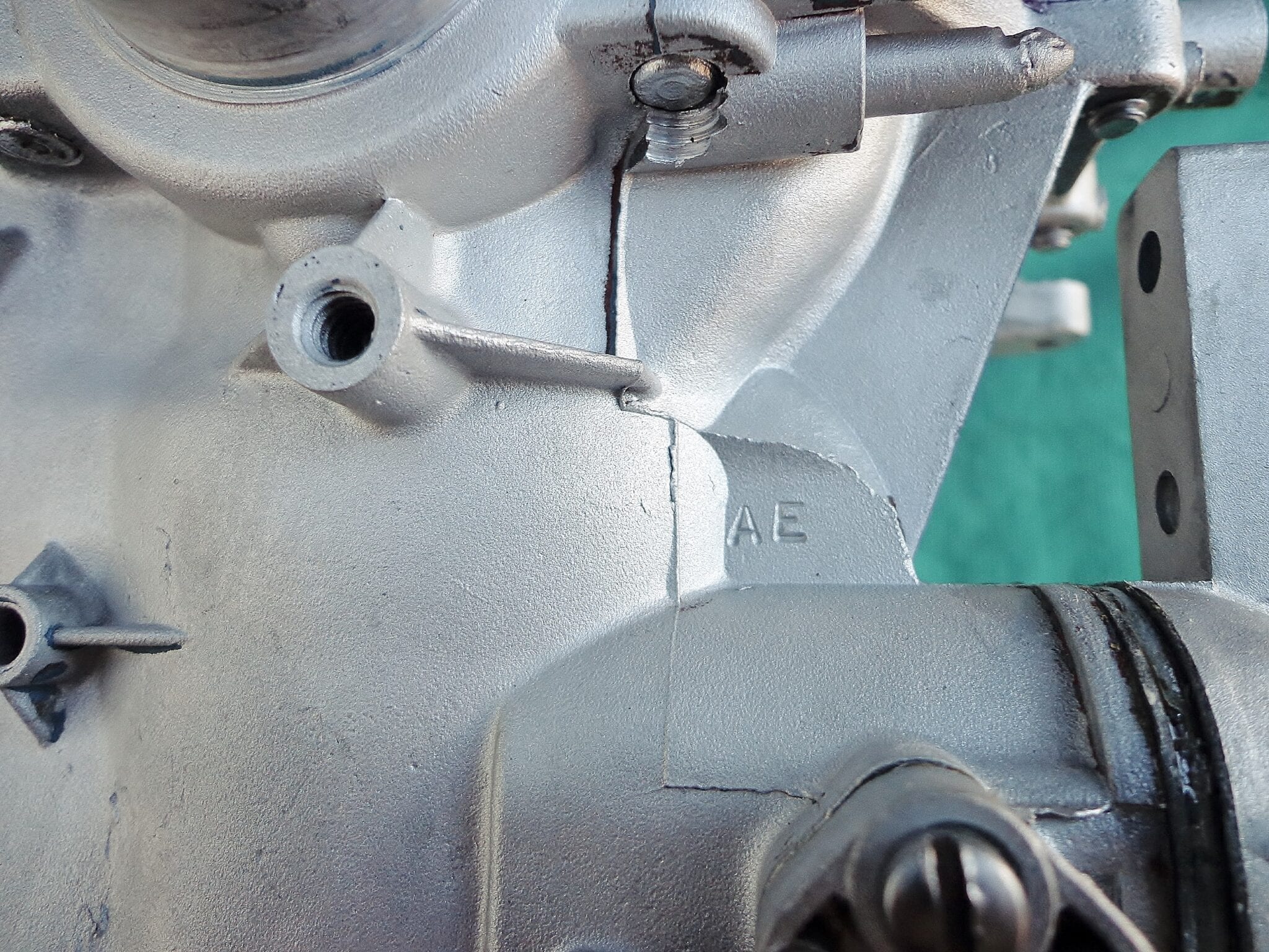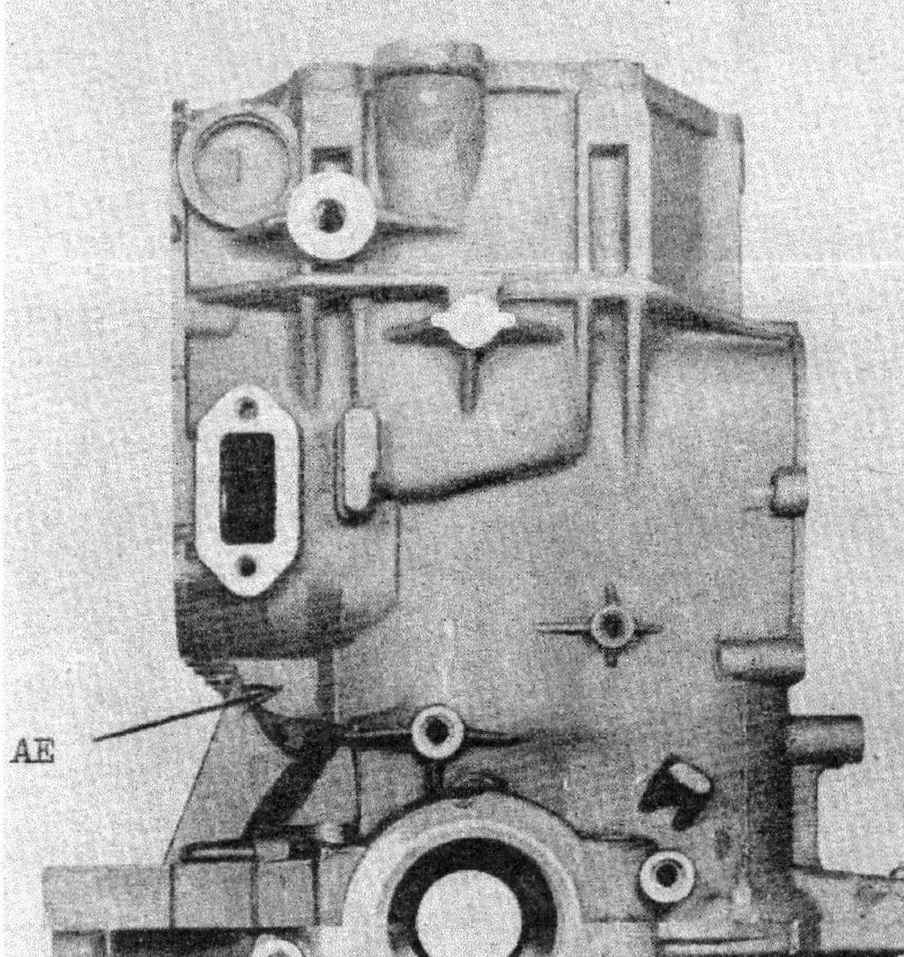 Here’s what it looks like in real life. The screw mentioned has been temporarily removed in this photo but the letters ‘AE’ can clearly be seen stamped into the top of the block. This motor is a ’55 Evinrude Big Twin. The Johnson RD should be the same.