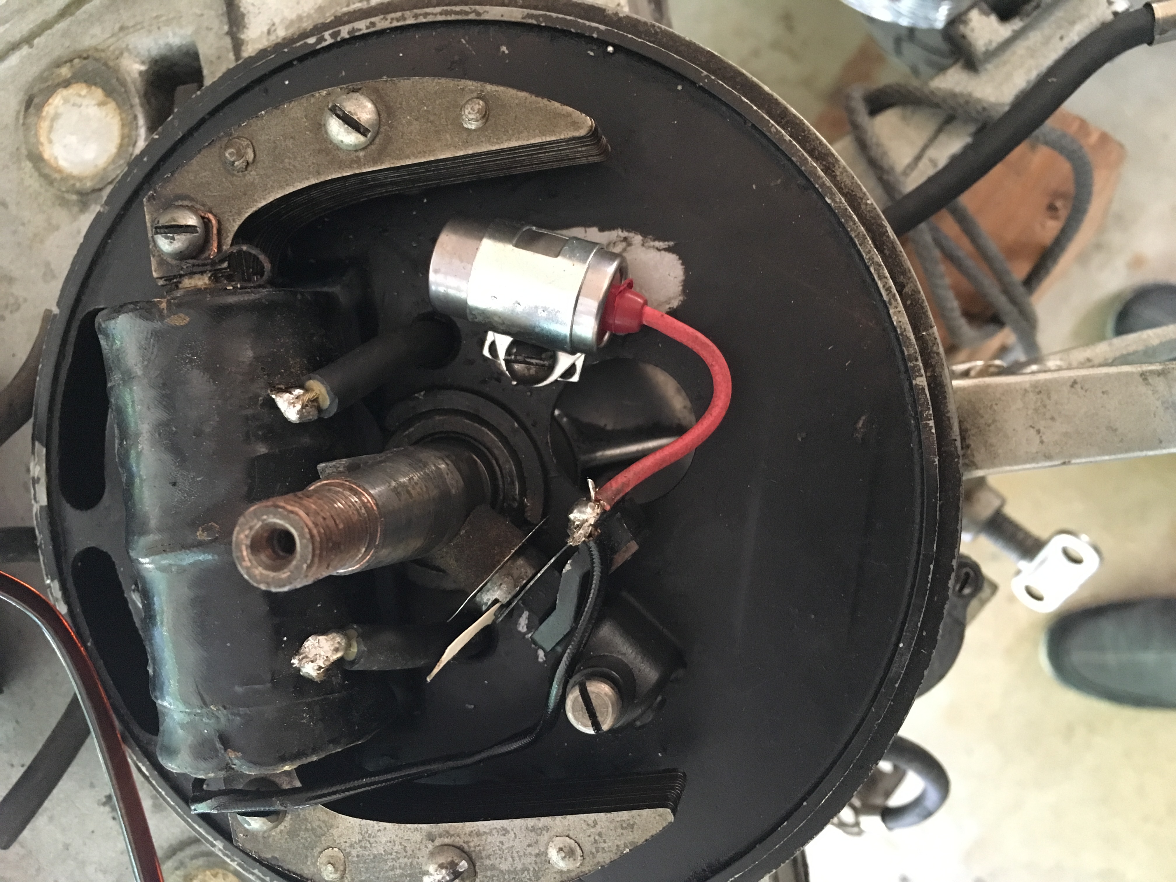July 4, 2016 at 6:23 pm #39576Don’t know too much about this style, but am "assuming" that spark occurs on both cylinders at the same time…So, to me, this would rule out points/condenser. I’m thinking the secondary winding on the coil is grounded somewhere so spark is short circuiting to ground before it gets to the left side….