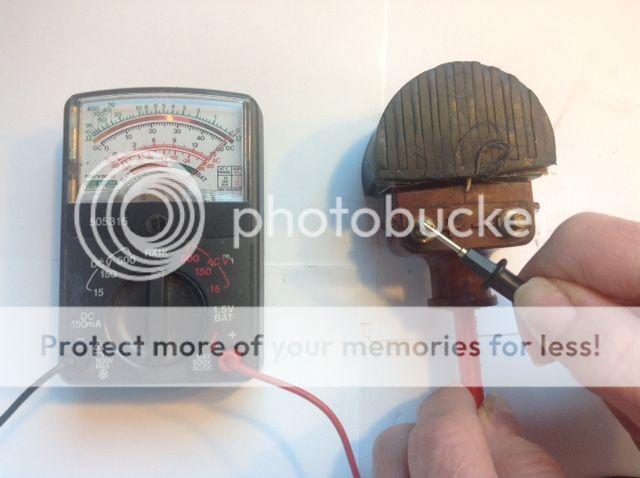 Regarding the coil readings, the good coil showed no continuity when the probes were held in the coil tower to both the + and – posts on the top of the coil. The bad coil pinned the needle.