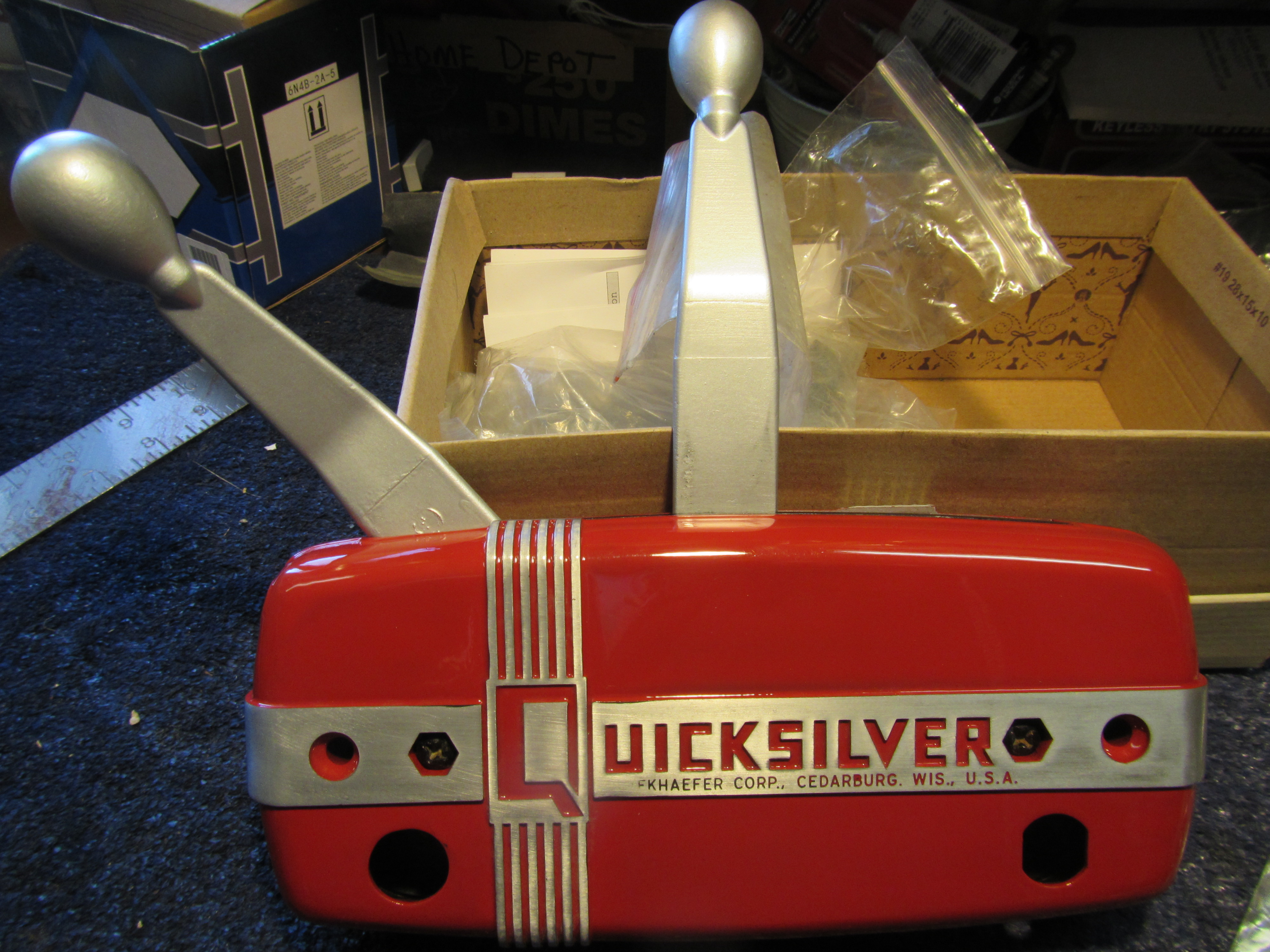 Mercury guys, We have a set of controls, should be about 1956. I would like to know a couple things about it. The control levers are both the same length. Should one be shorter for the gear shift? Both levers have the same part number on them. This unit has a spring detente on one leaver, I presume that would be the throttle. Should there be a spring detente on the gear shift also? The thing came to me in pieces and I would like to assemble it correctly.